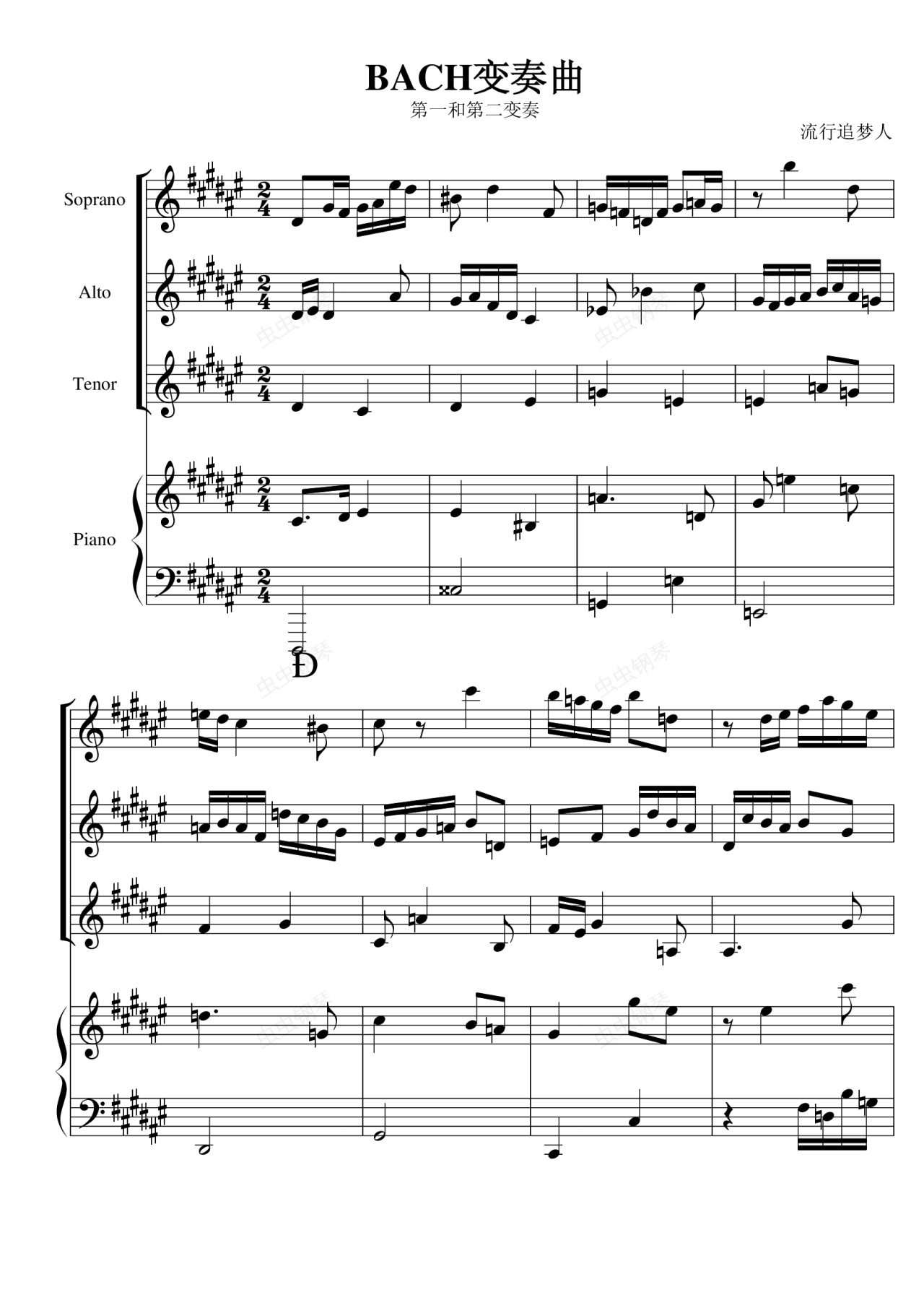 钢琴谱:BACH变奏曲, 第一和第二变奏