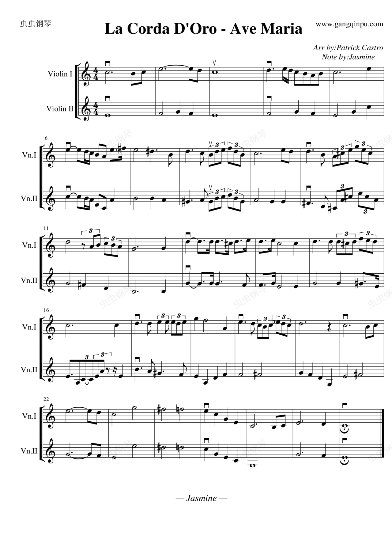 钢琴谱:圣母玛利亚(金色琴弦双小提合奏谱)