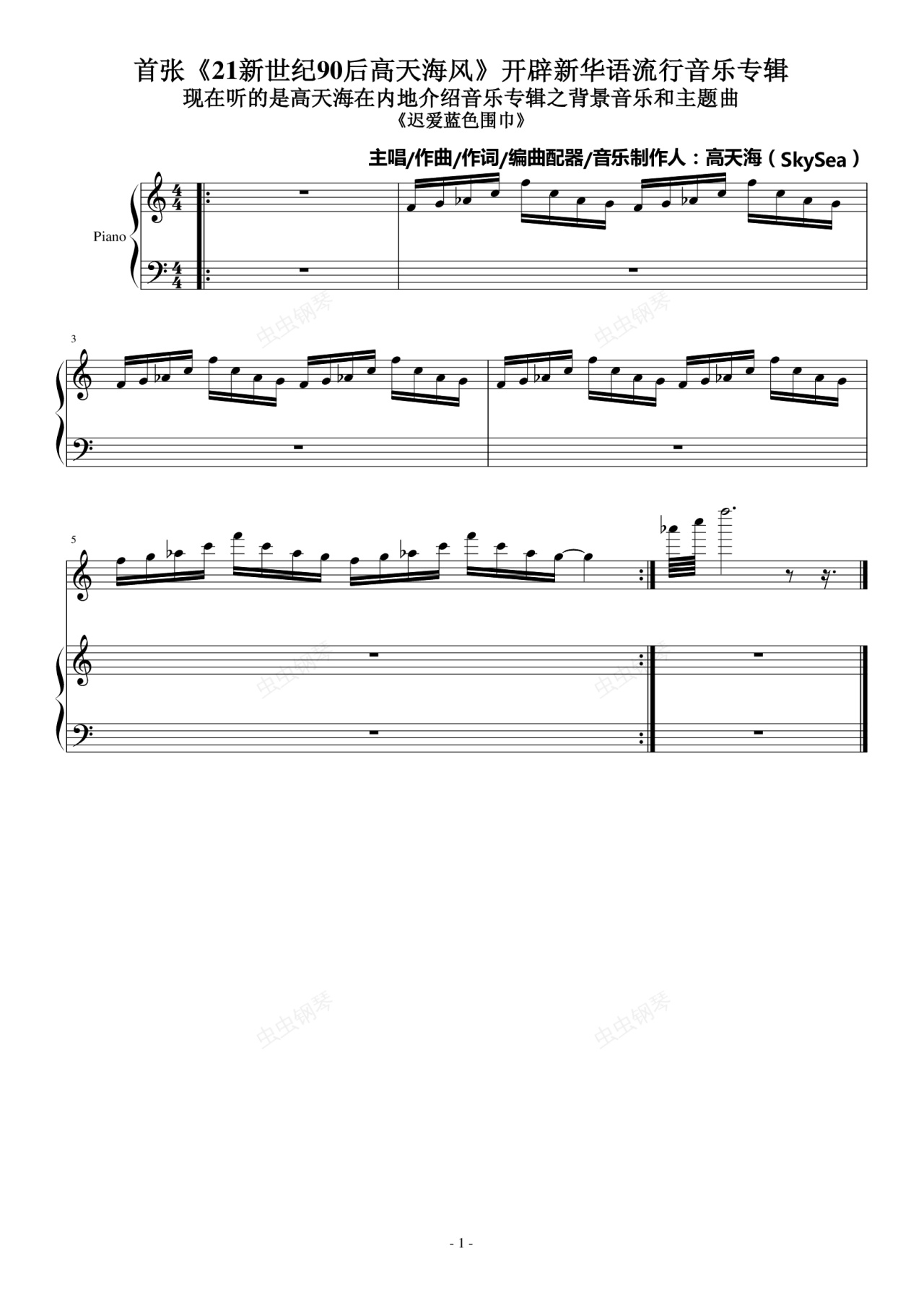 钢琴谱:迟爱蓝色围巾
