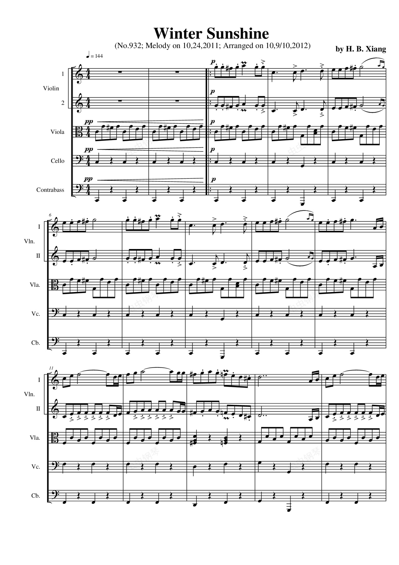 钢琴谱:《Winter Sunshine》(弦乐队)