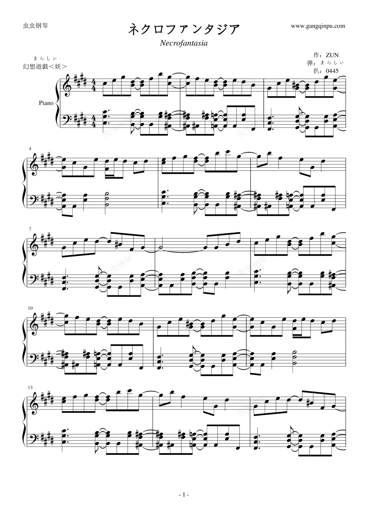 钢琴谱:【东方妖妖梦】【触手猴】ネクロファンタジア