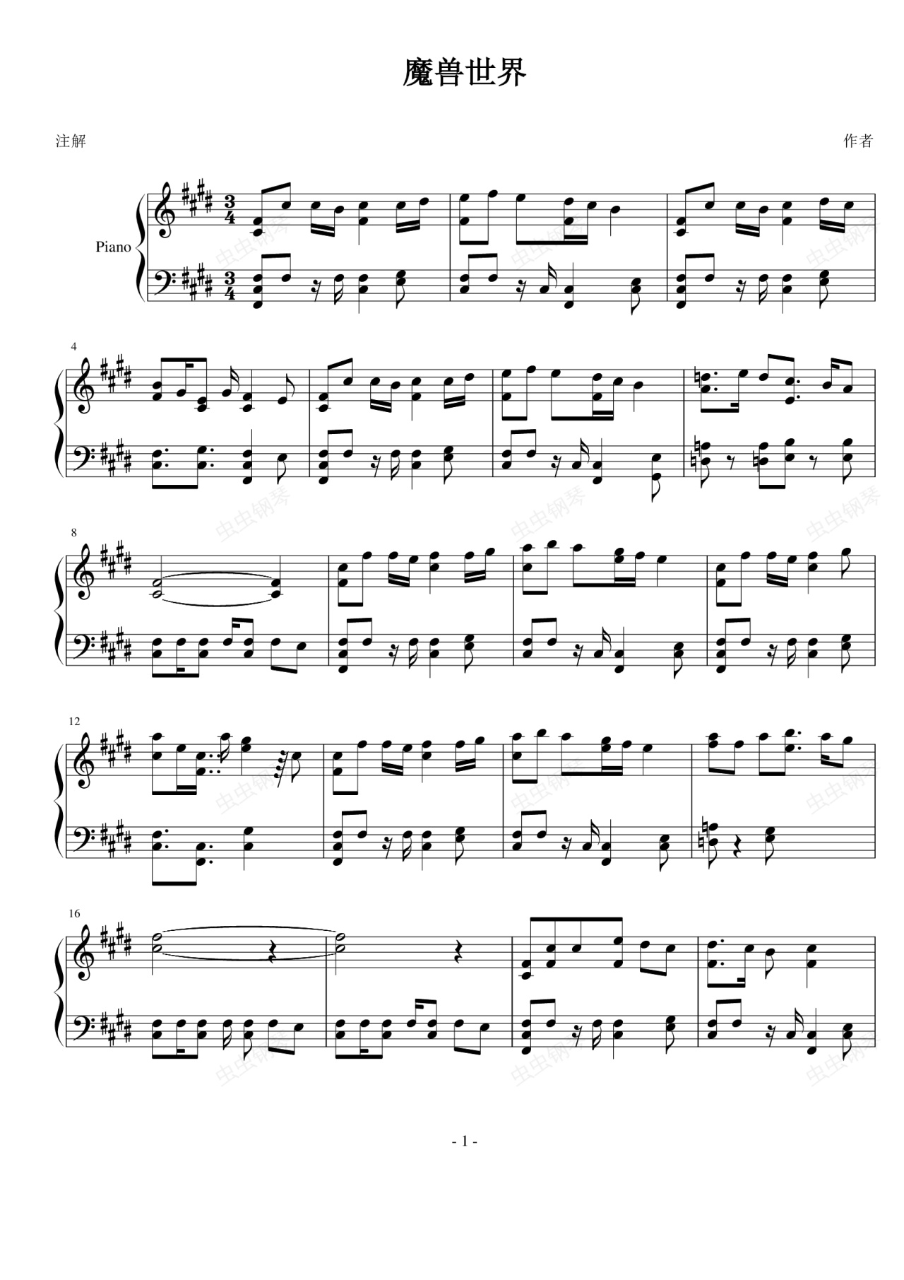 钢琴谱:魔兽世界酒馆音乐