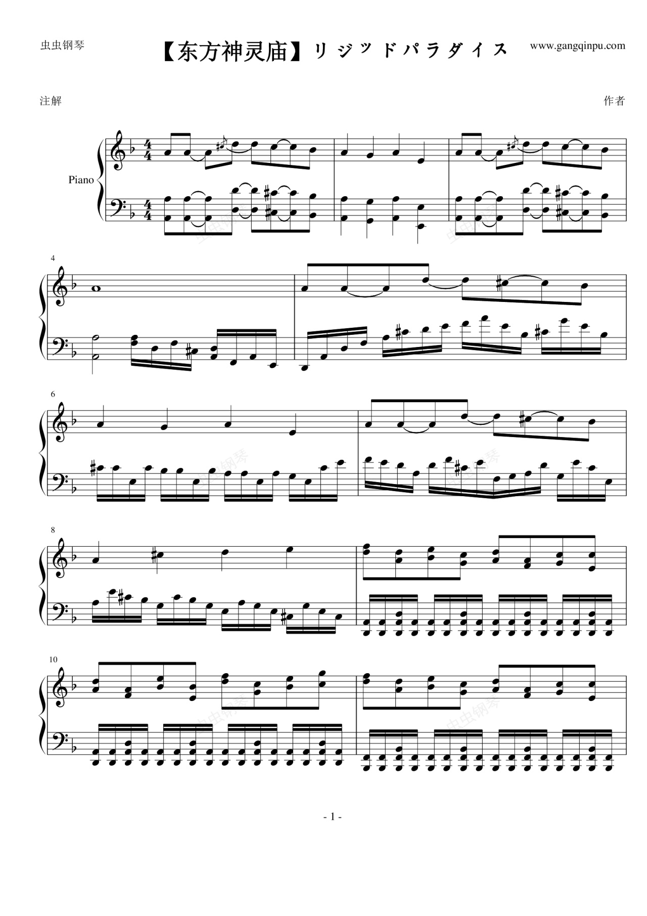 钢琴谱:【东方神灵庙】リジッドパラダイス