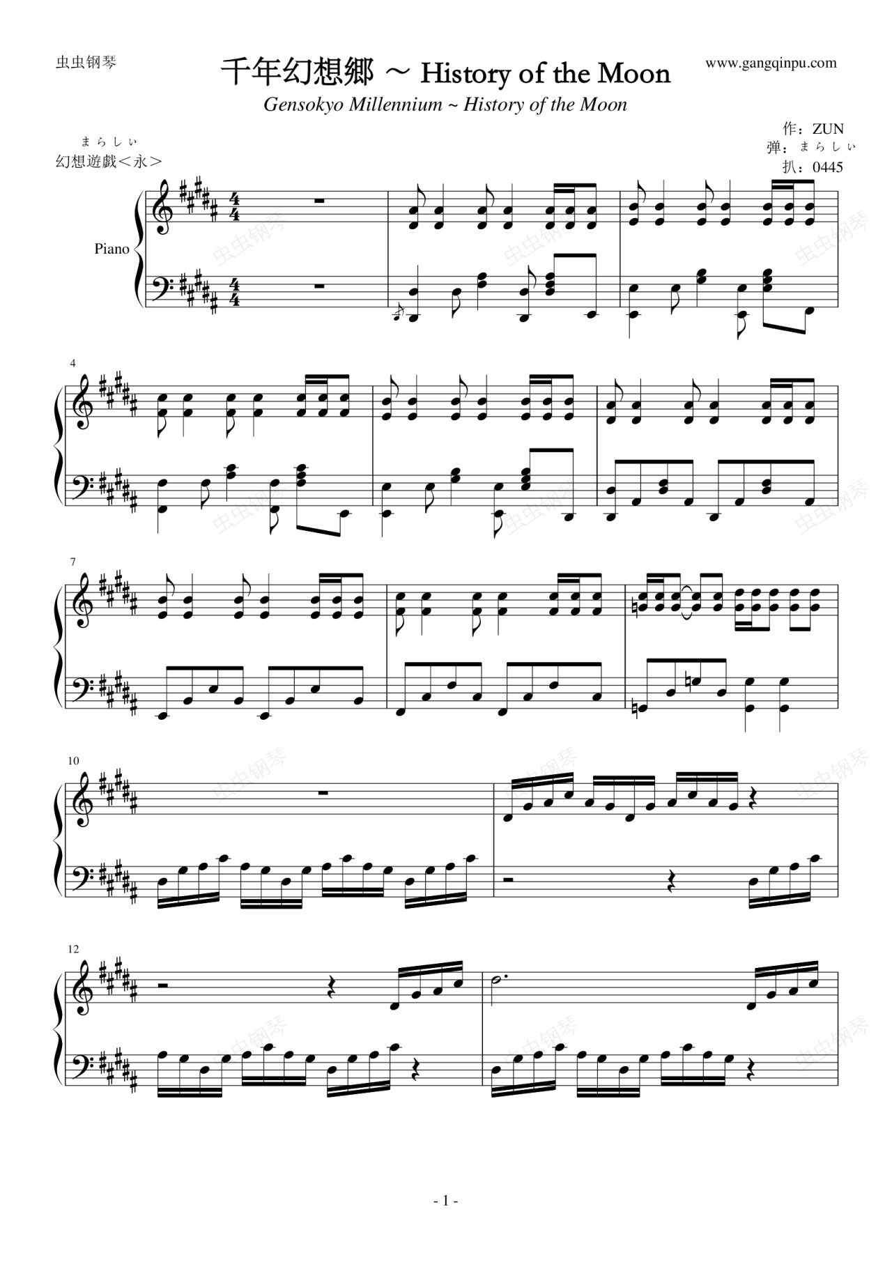 钢琴谱:【东方永夜抄】【触手猴】千年幻想郷 ~ History of the Moon