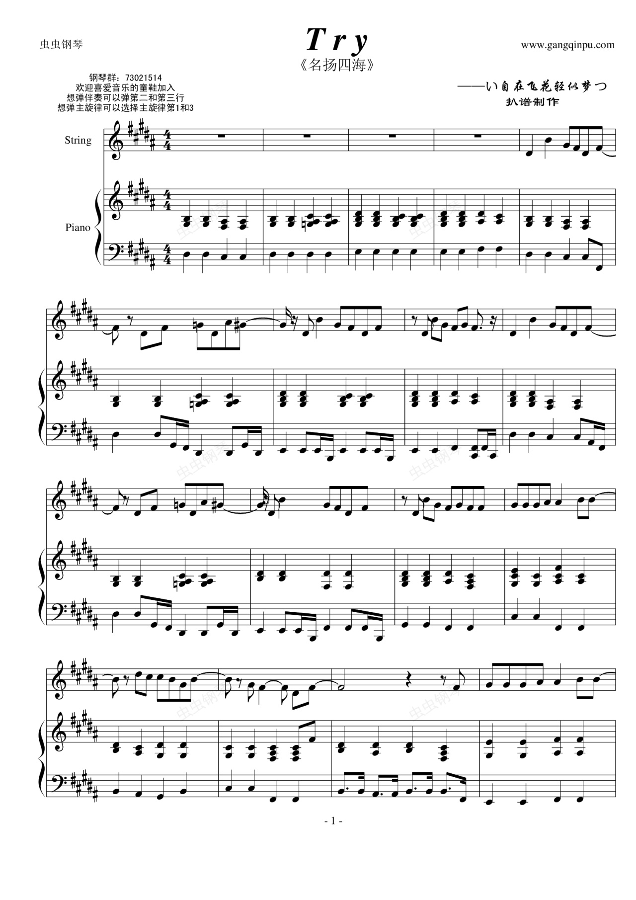 钢琴谱:【名扬四海】Try—弹唱(接近原版)