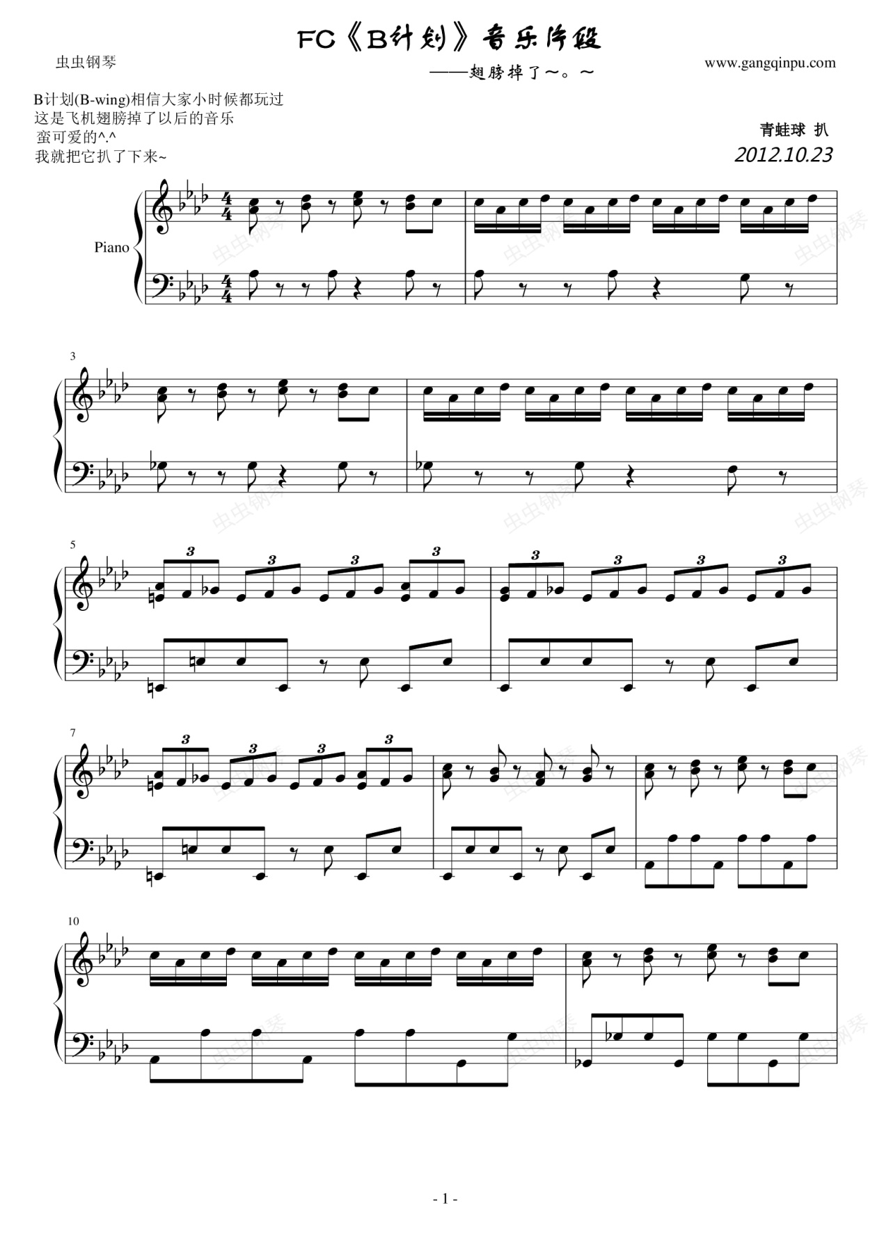 钢琴谱:FC[B计划]音乐片段