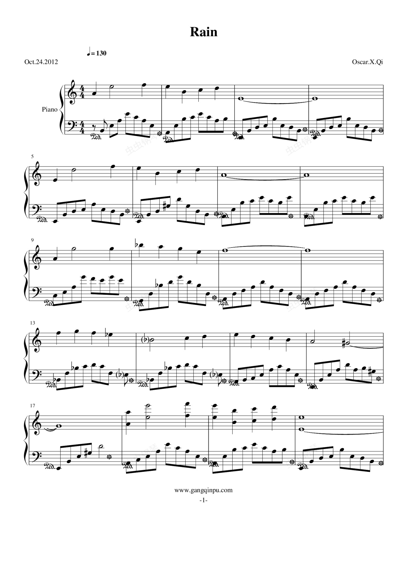 钢琴谱:雨