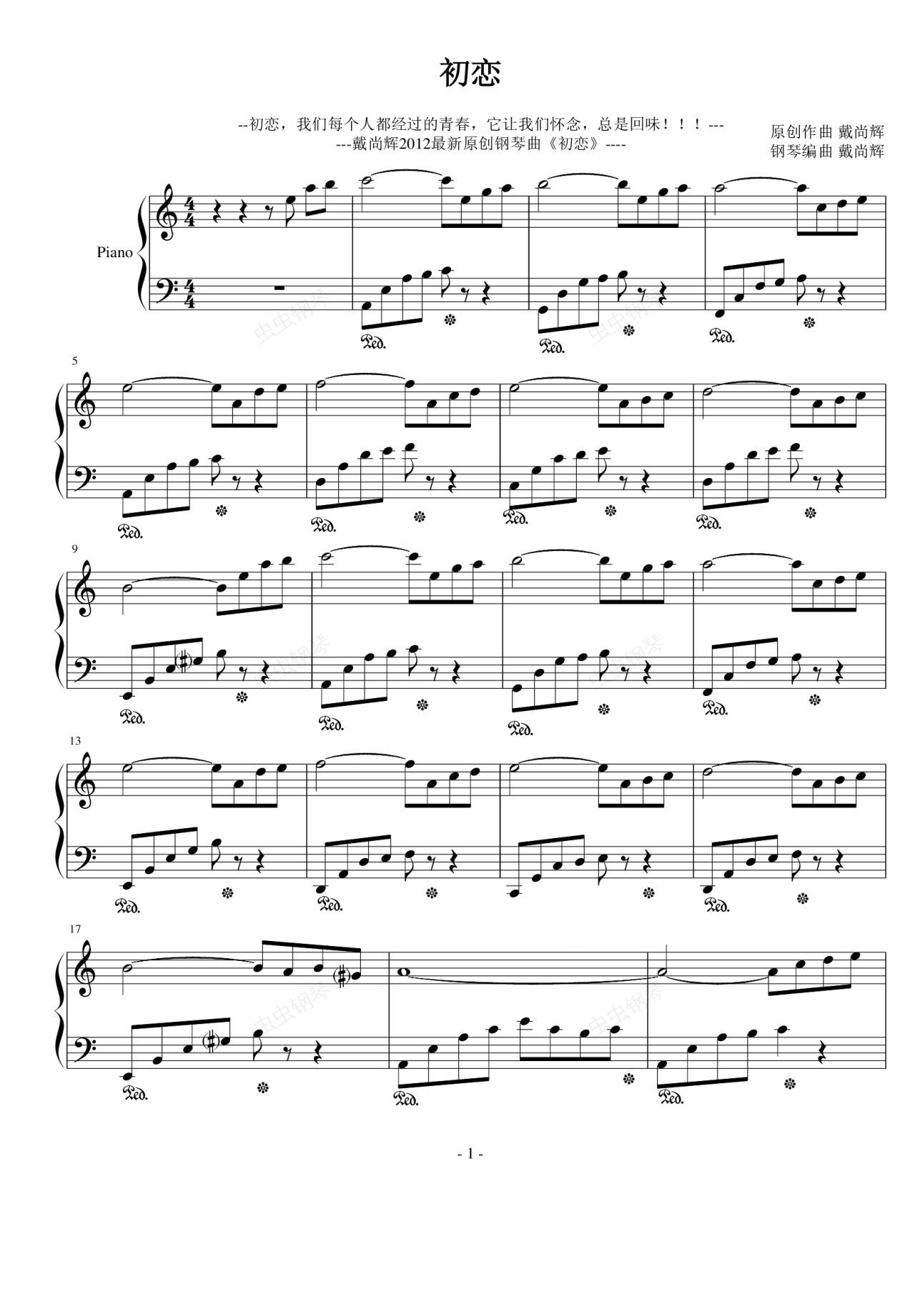 钢琴谱:《初恋》戴尚辉创作修改最佳版