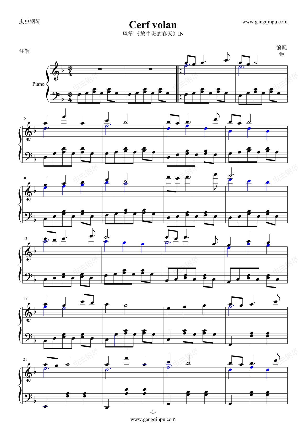 钢琴谱:Cerf volan