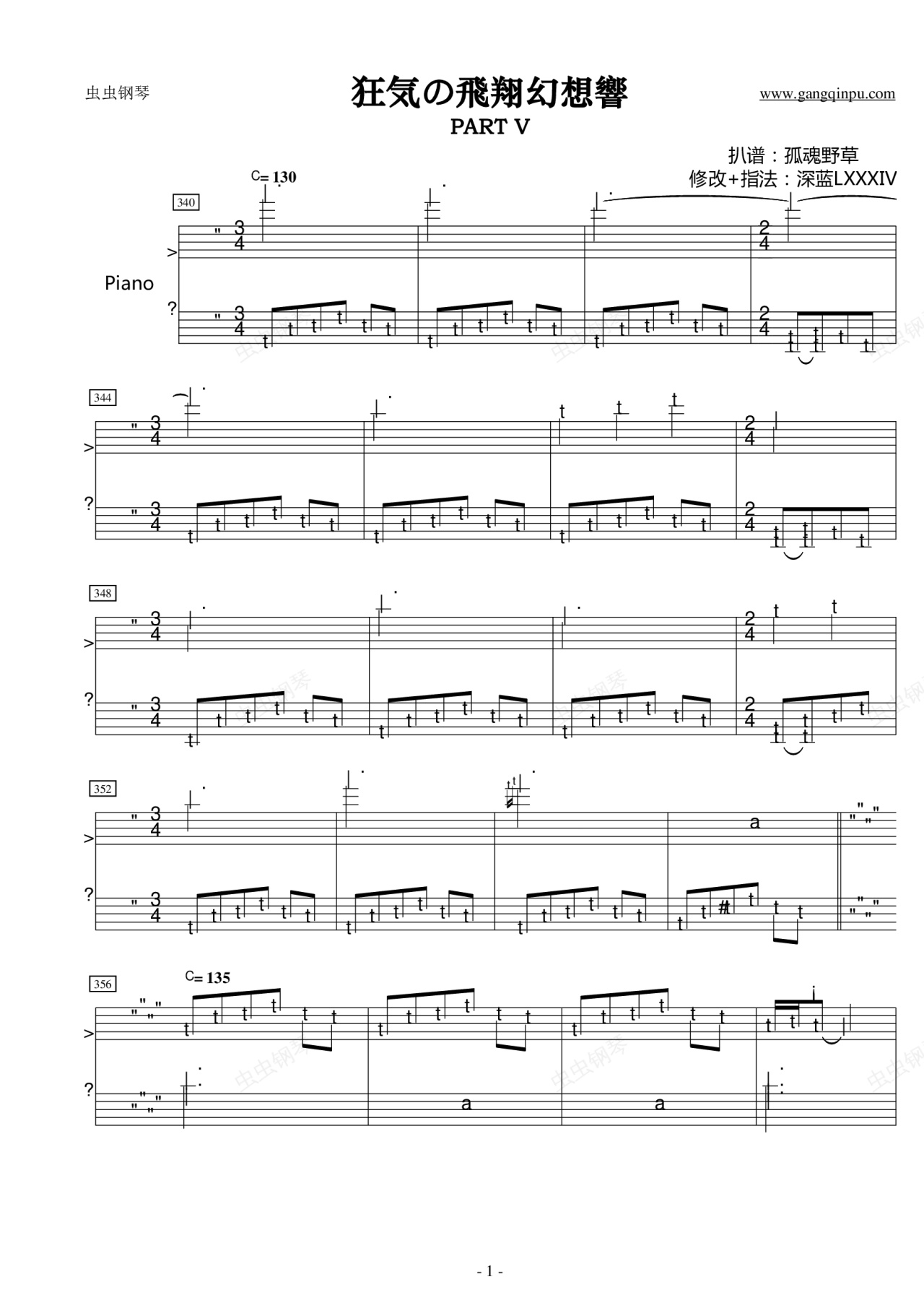 钢琴谱:狂気の飛翔幻想響(Part 5)(指法版)