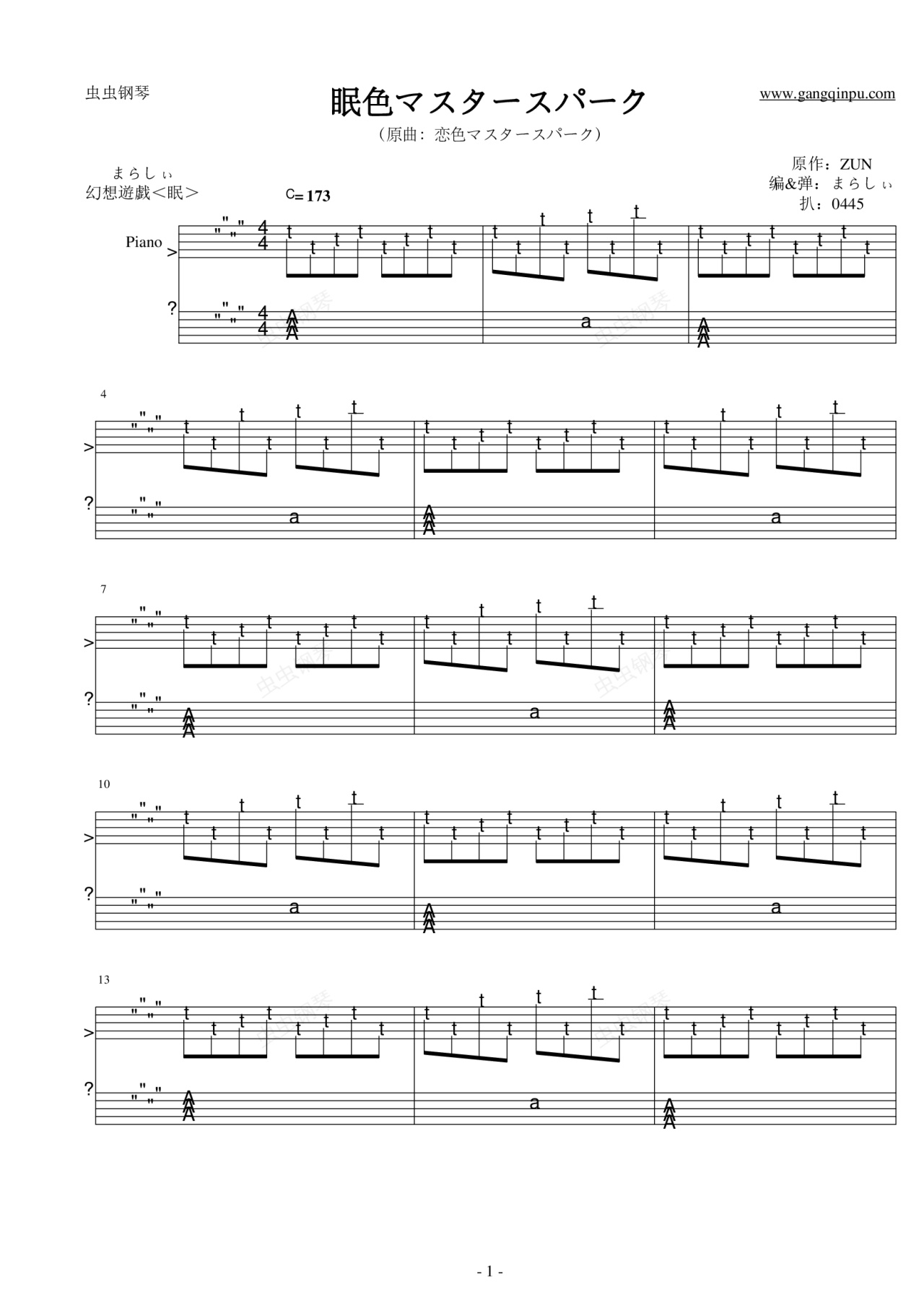 钢琴谱:【东方永夜抄】【触手猴】眠色マスタースパーク