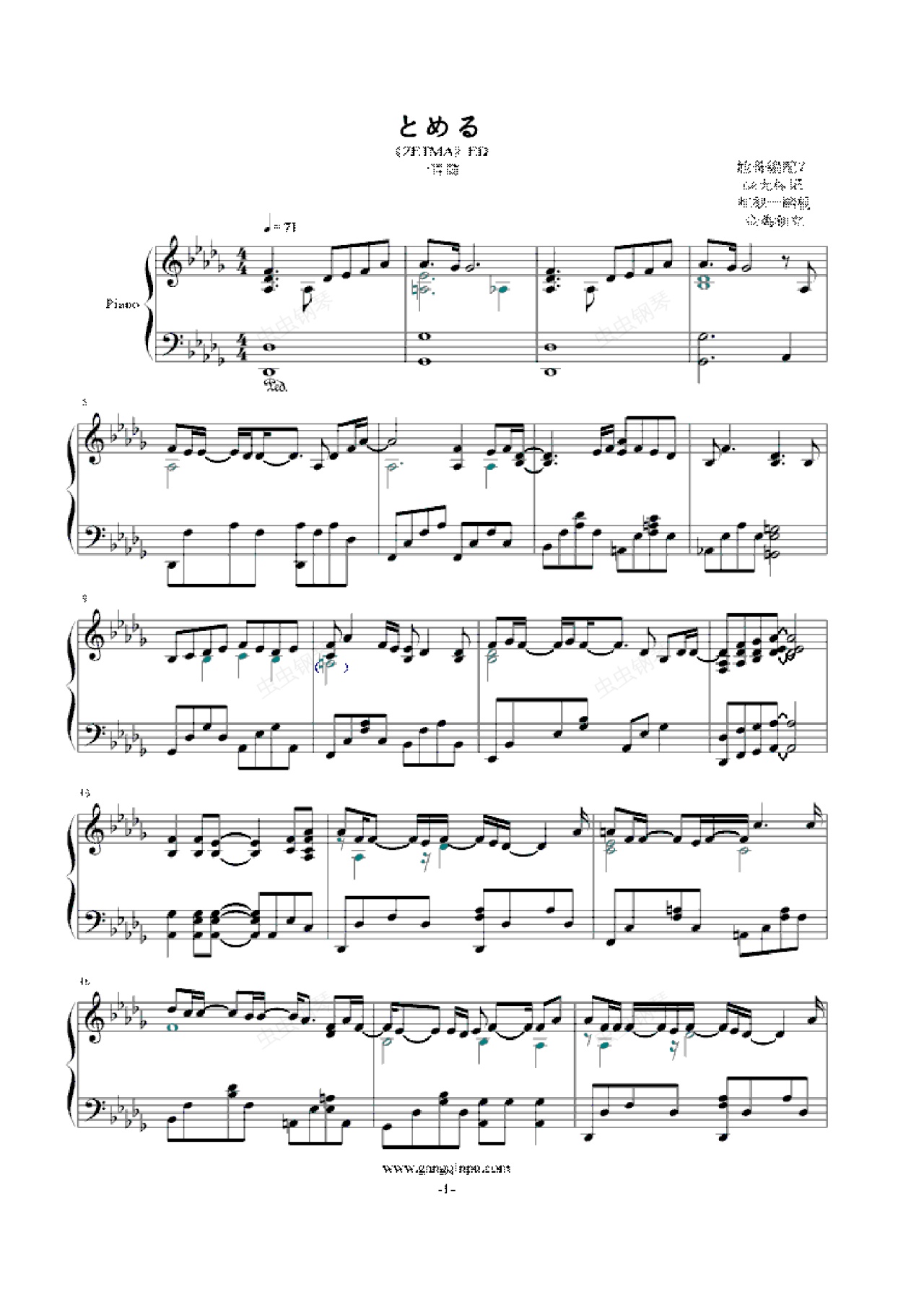钢琴谱:とめる《ZETMAN》ED