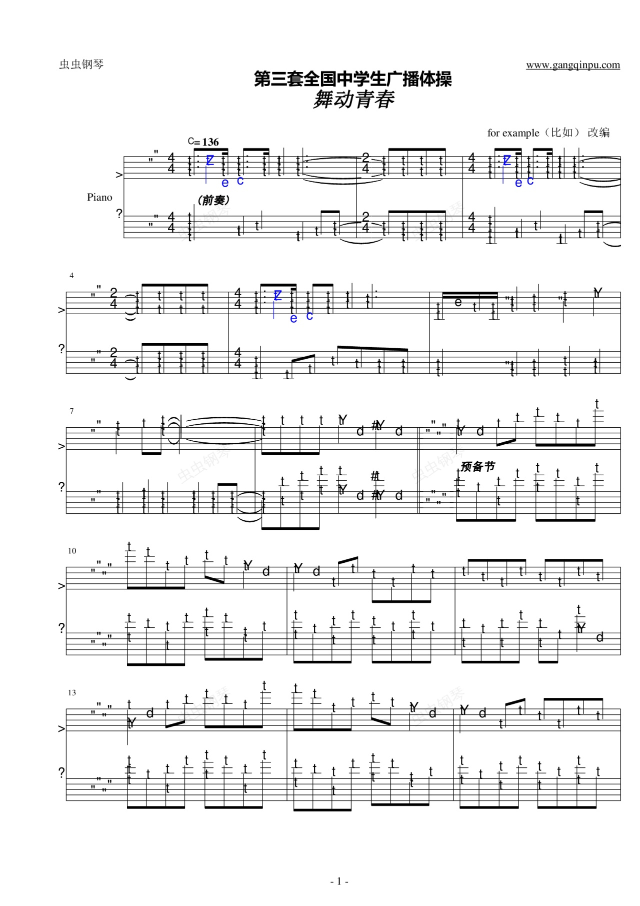 钢琴谱:第三套全国中学生广播体操 舞动青春