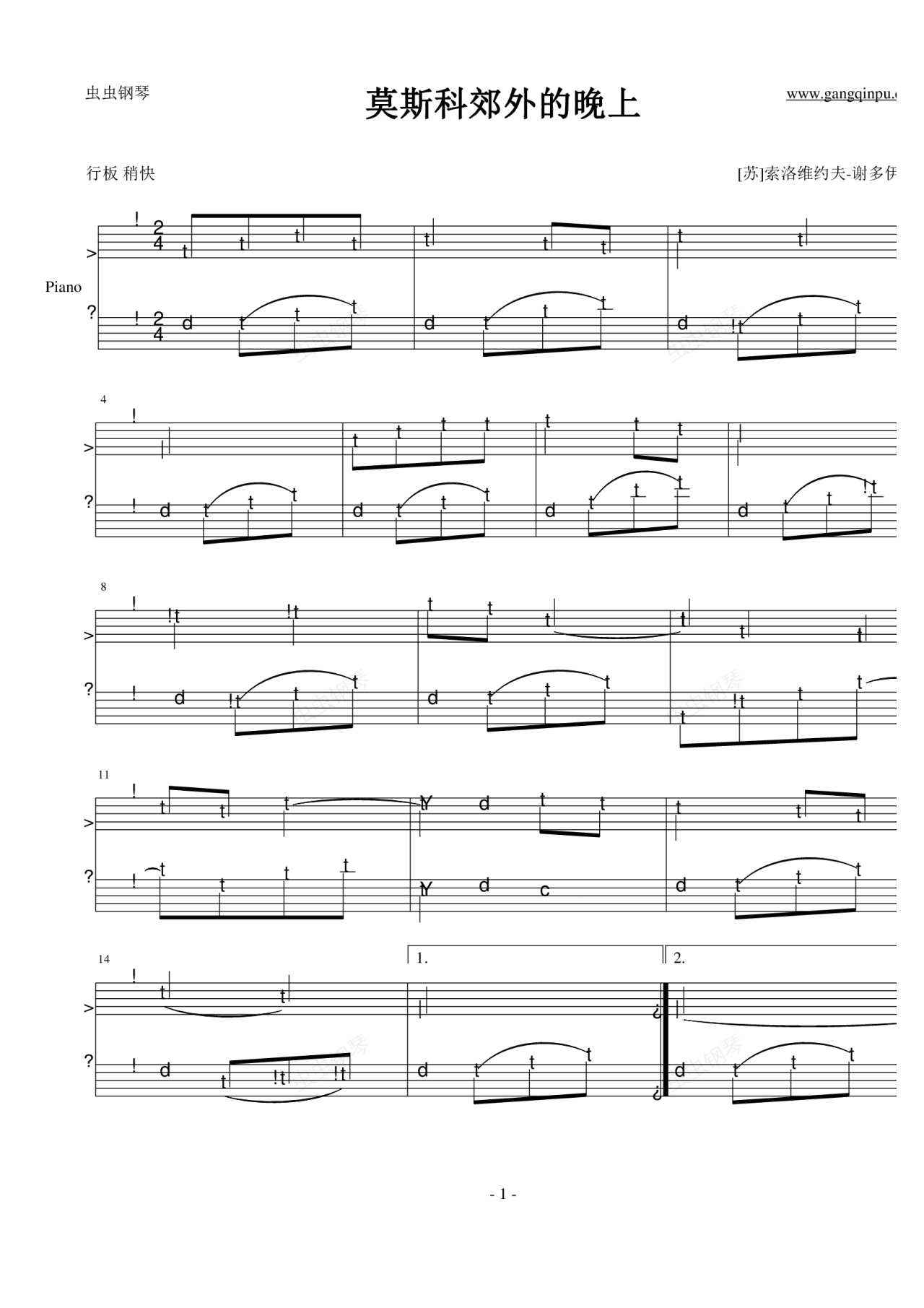钢琴谱:莫斯科郊外的晚上