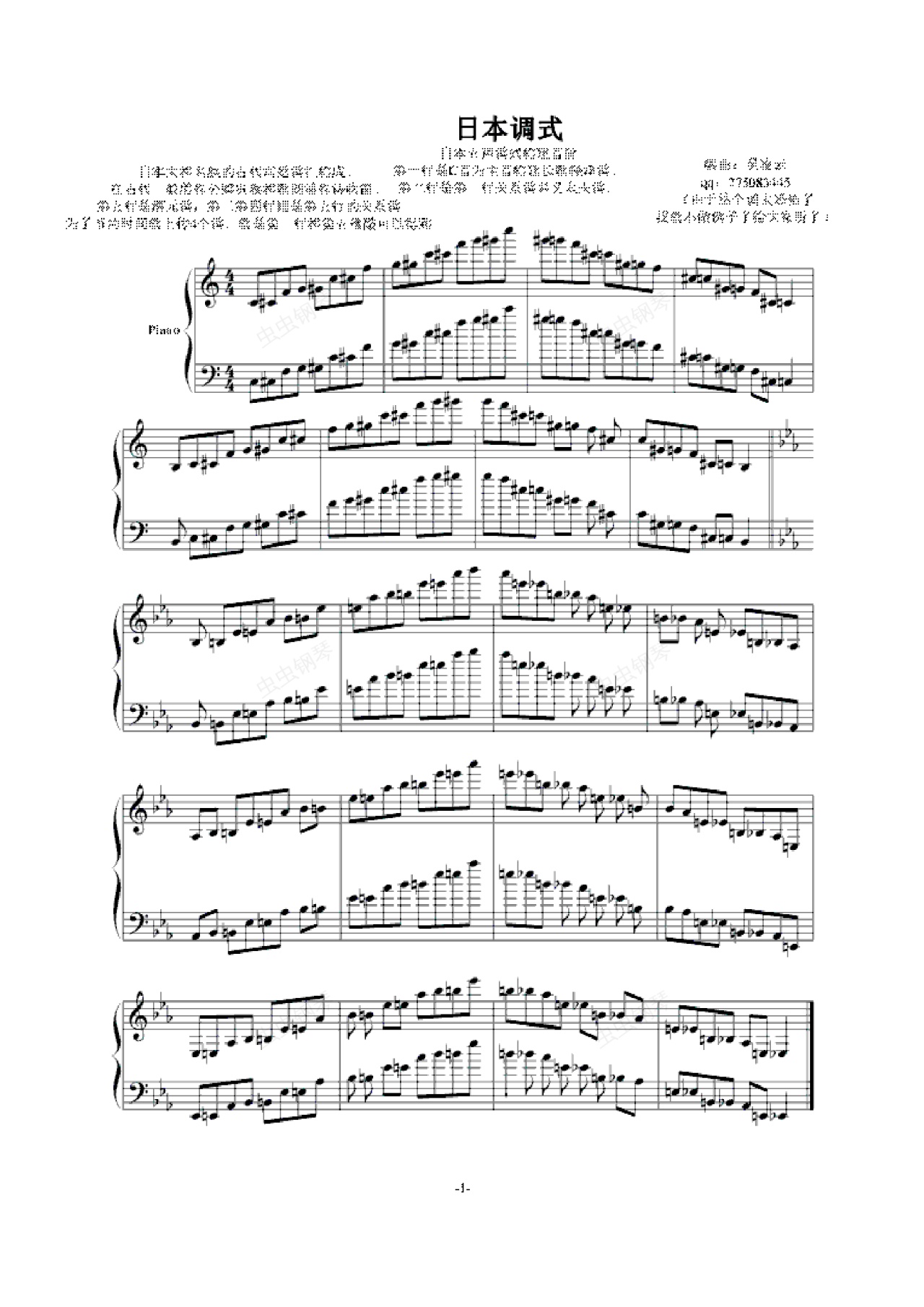 钢琴谱:日本大和民族调式(恐怖的日本五声调式)