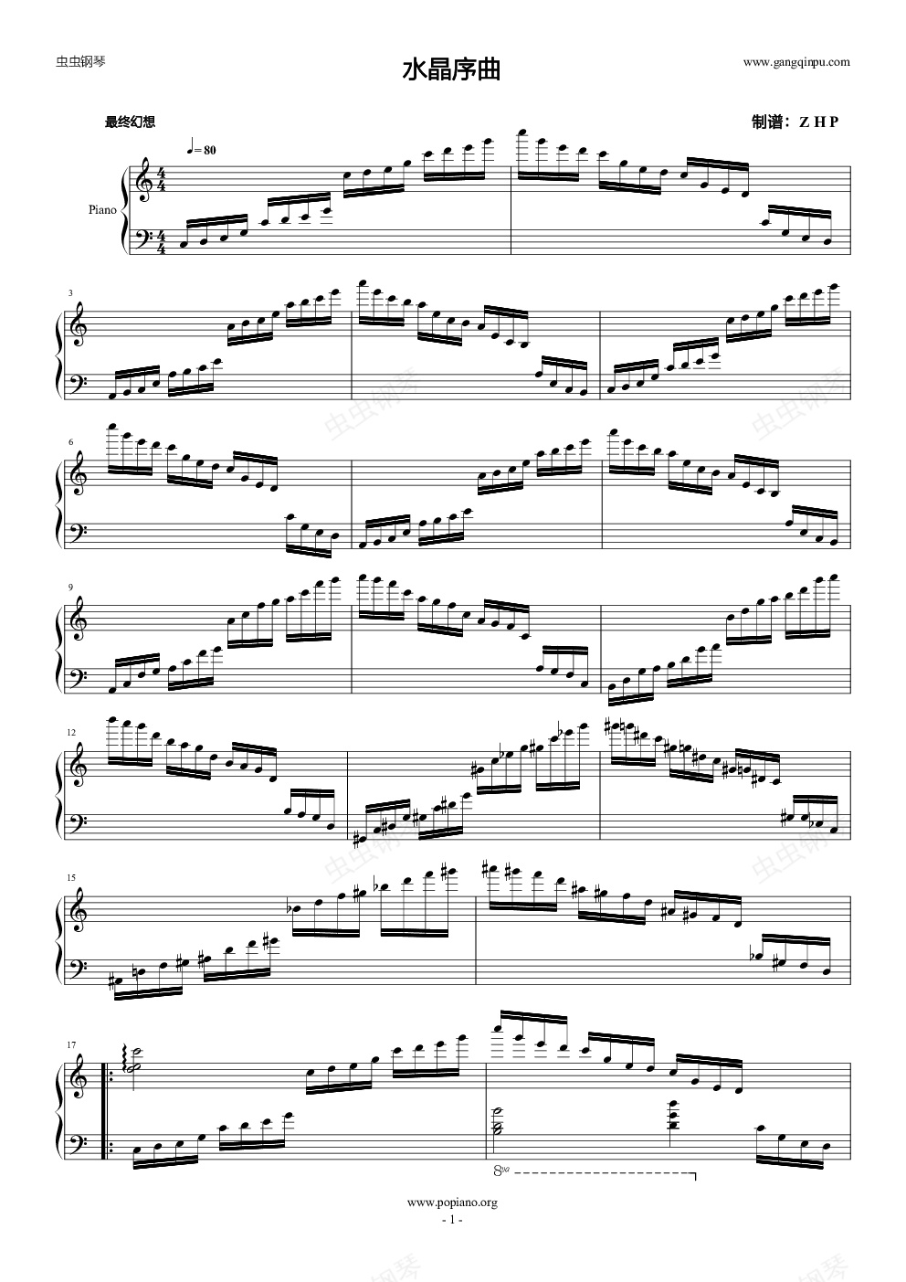 钢琴谱:最终幻想水晶序曲