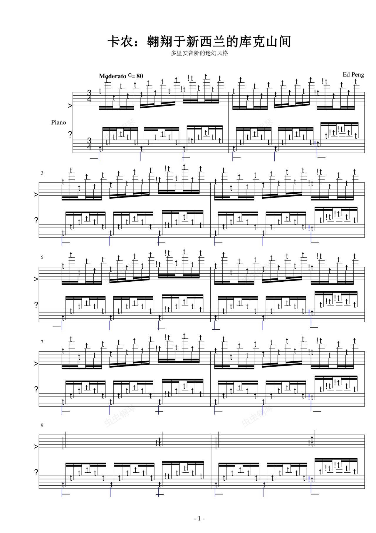 钢琴谱:卡农:翱翔于新西兰的库克山间