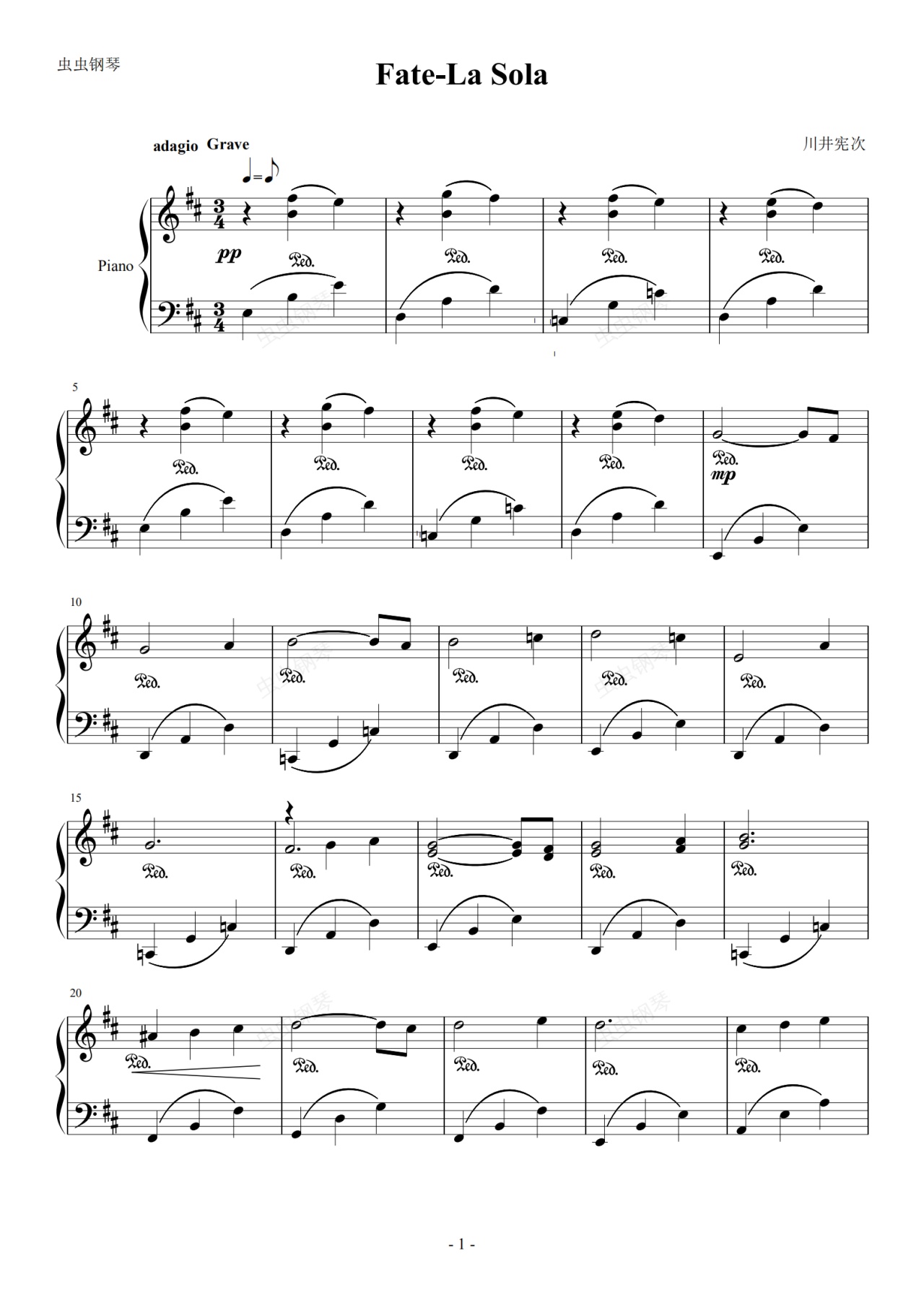 钢琴谱:La Sola