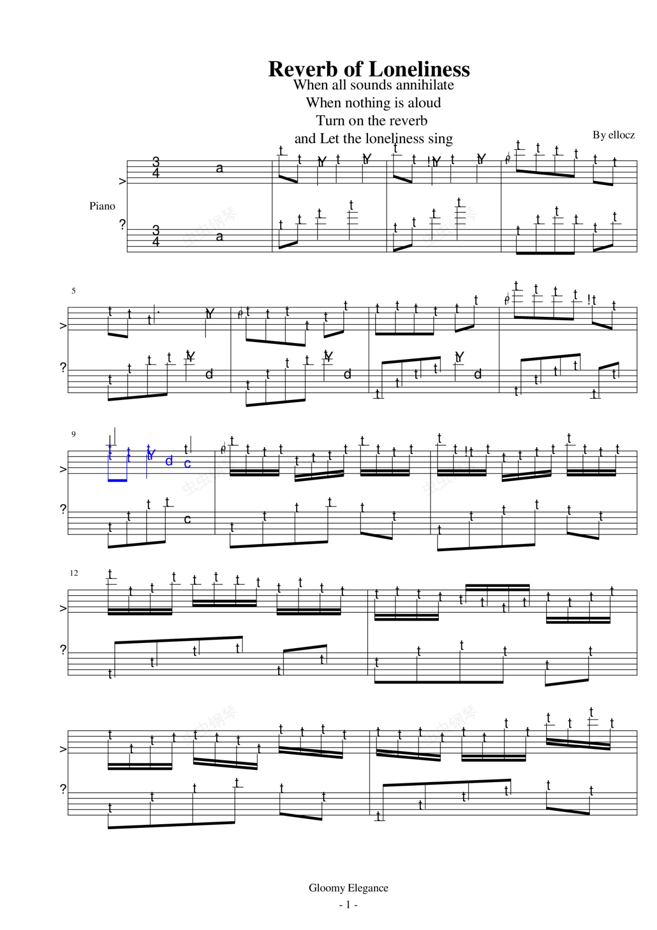 钢琴谱:Reverb of Loneliness