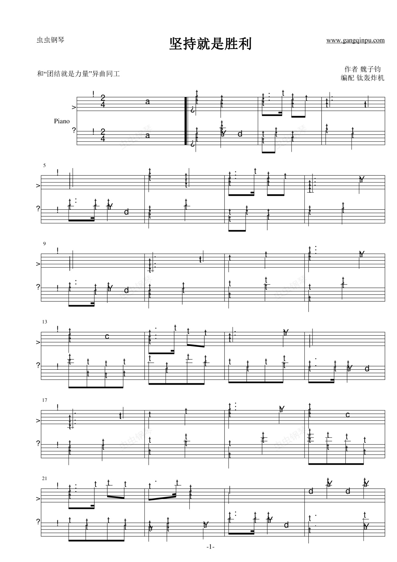 钢琴谱:坚持就是胜利