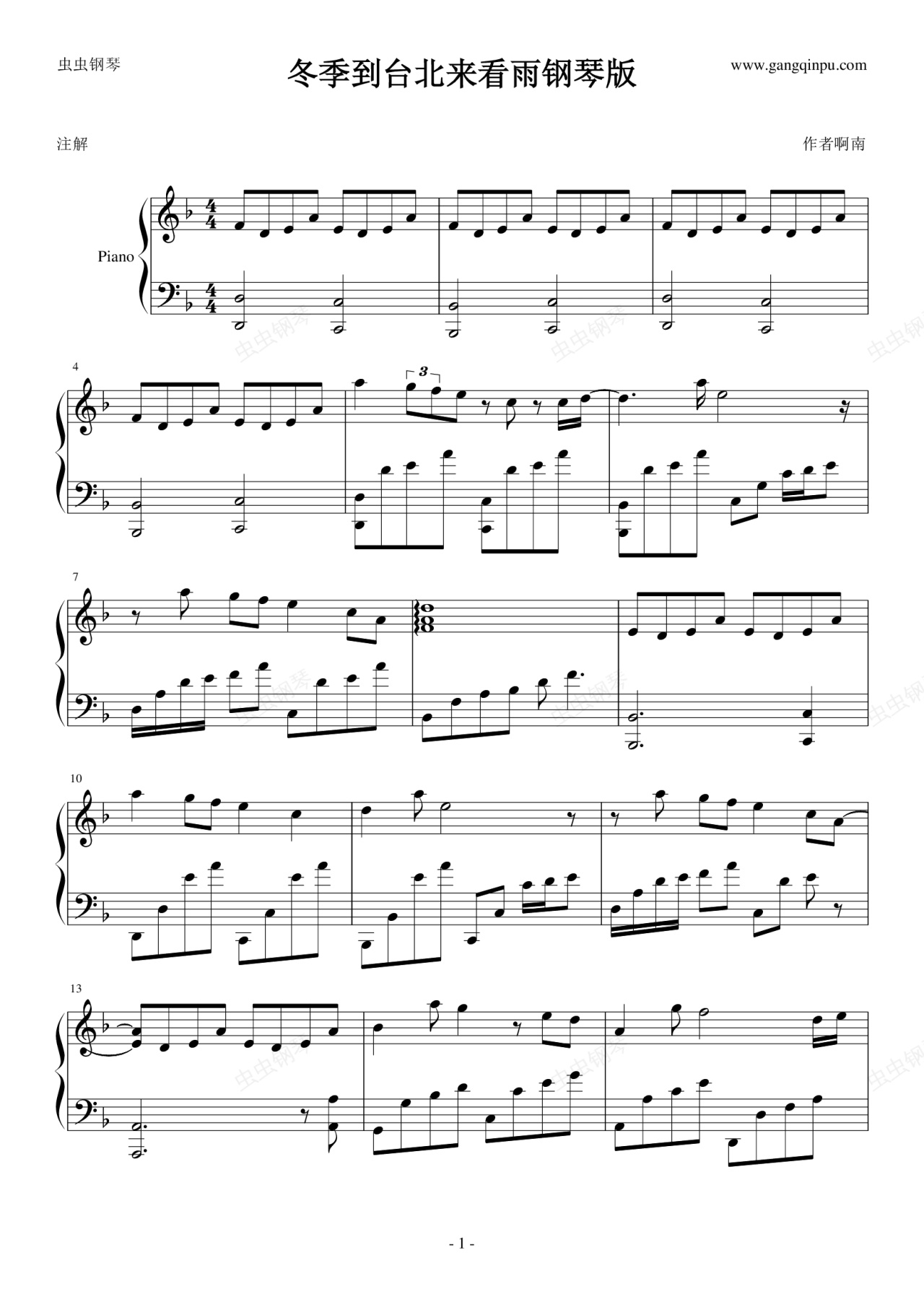 钢琴谱:冬季到台北来看雨钢琴版啊南编