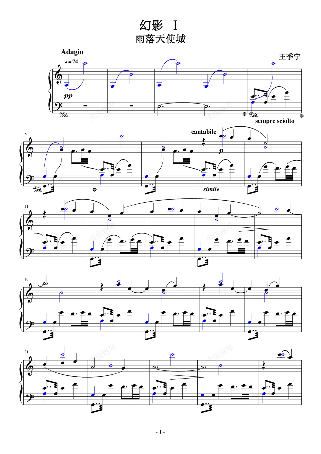 钢琴谱:雨落天使城