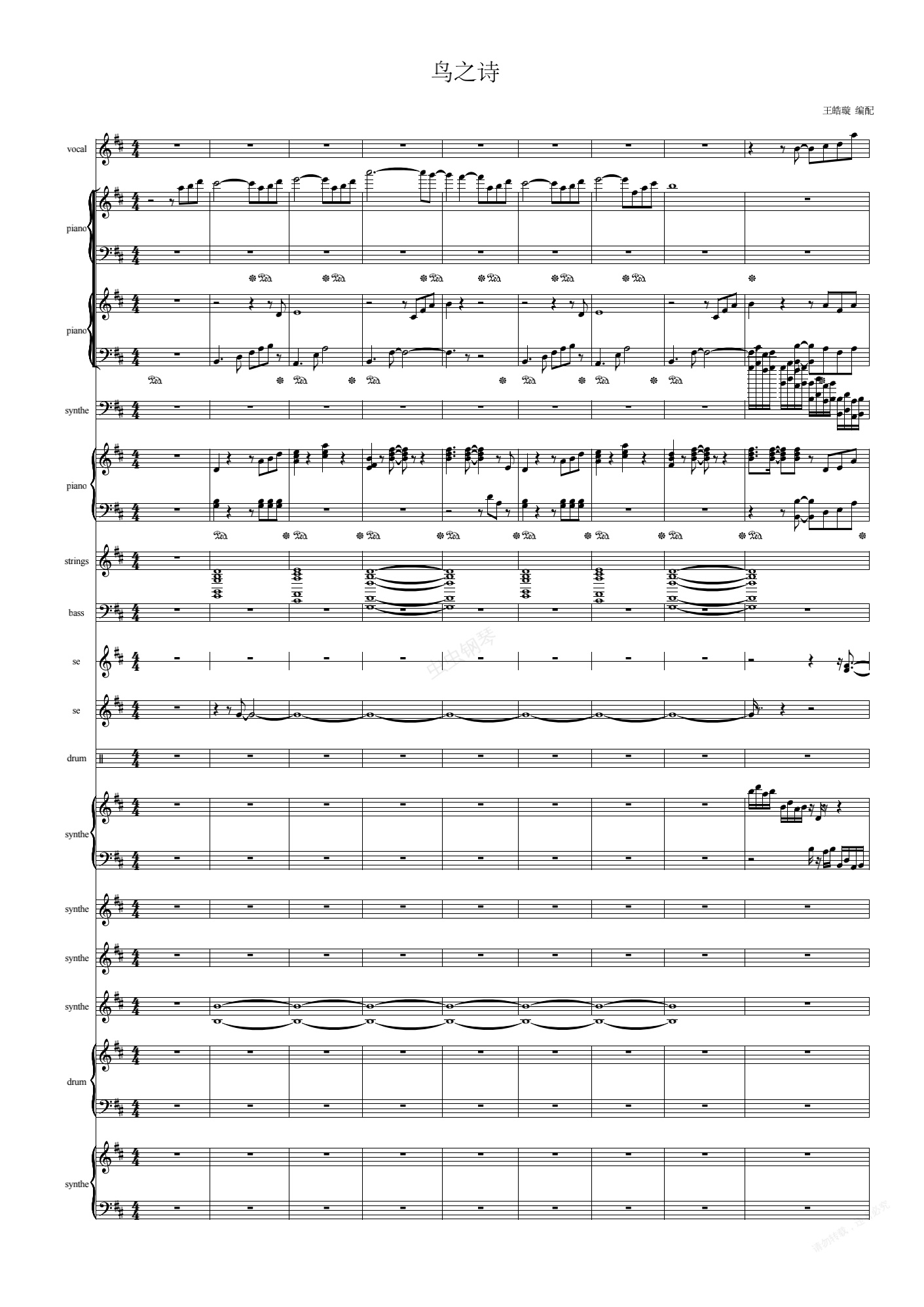 钢琴谱:【完美还原】鸟の诗