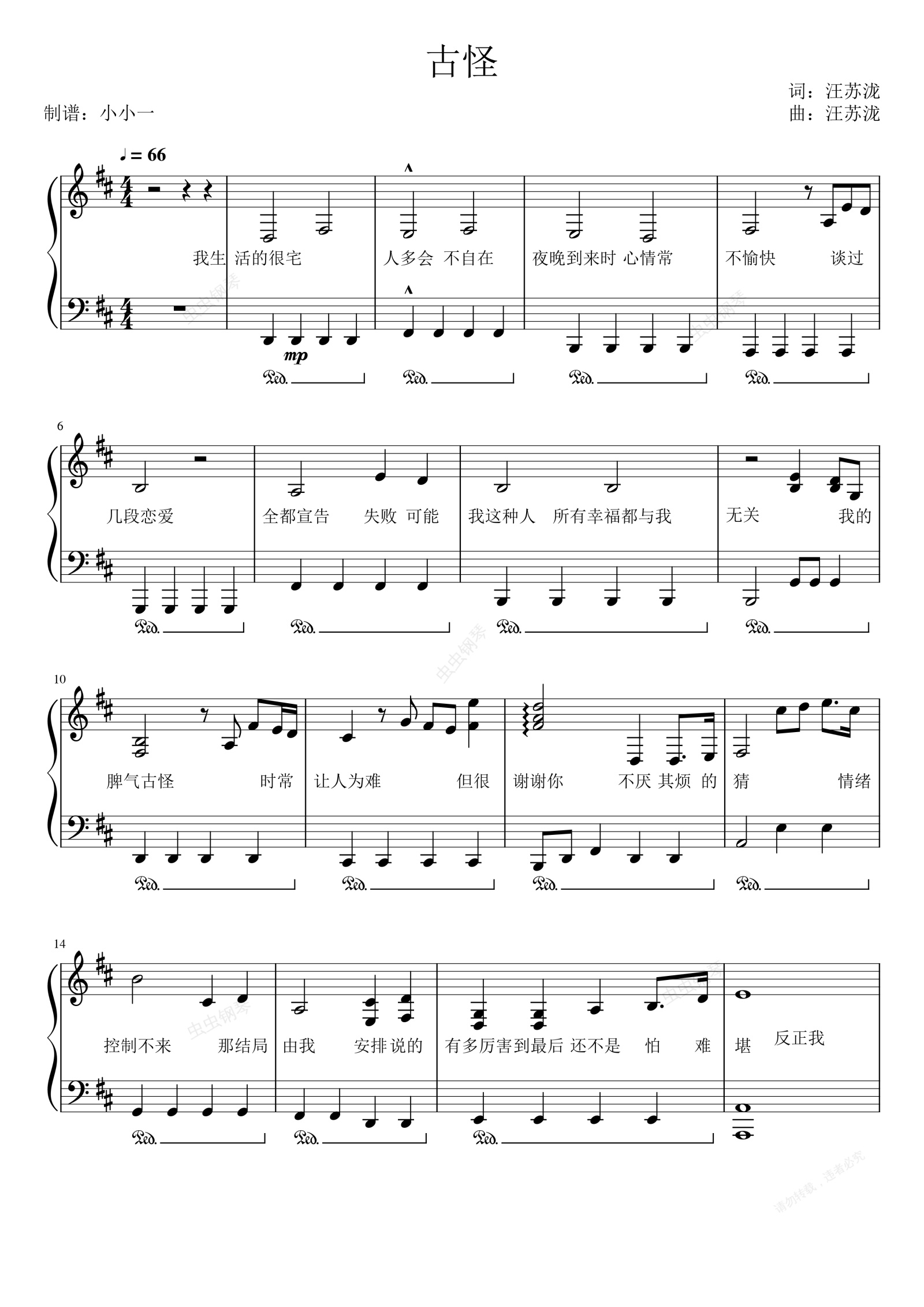 钢琴谱:古怪-汪苏泷-钢琴伴奏