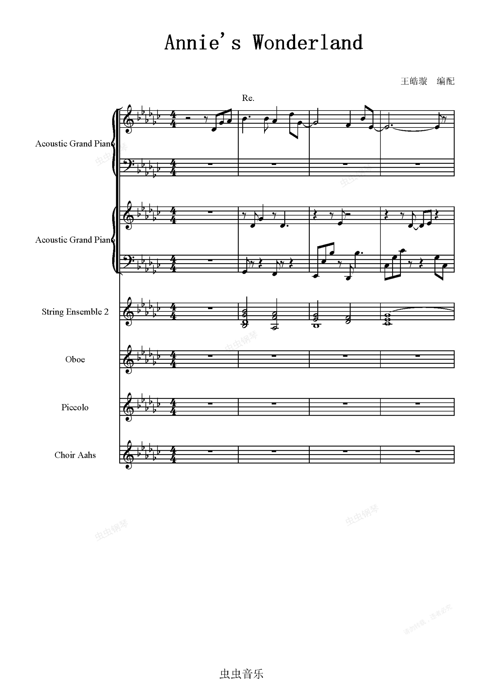 钢琴谱:【完美还原】Annie's Wonderland