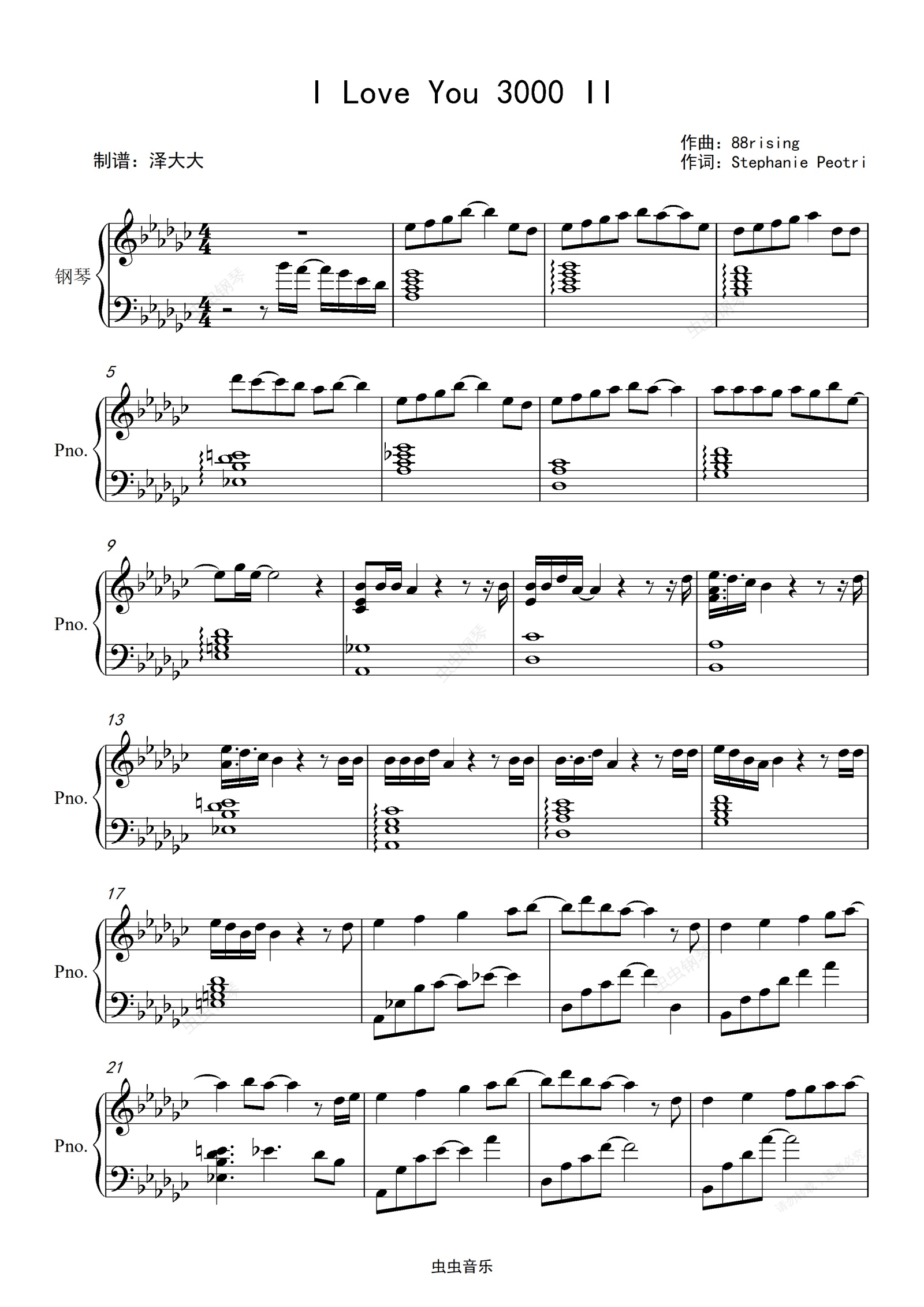 钢琴谱:I Love You 3000 II(王嘉尔版)