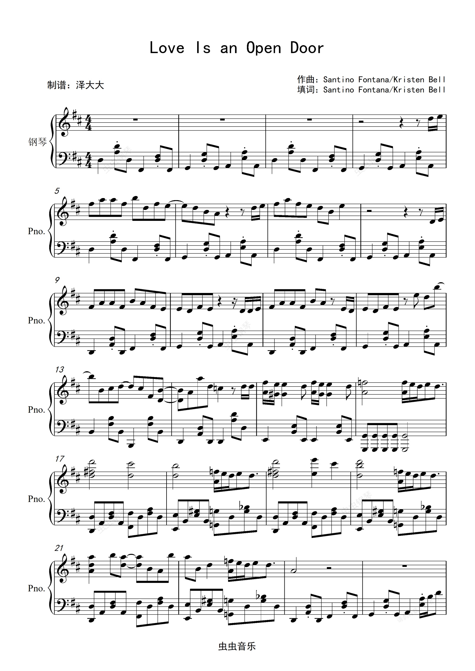 钢琴谱:Love Is an Open Door-冰雪奇缘