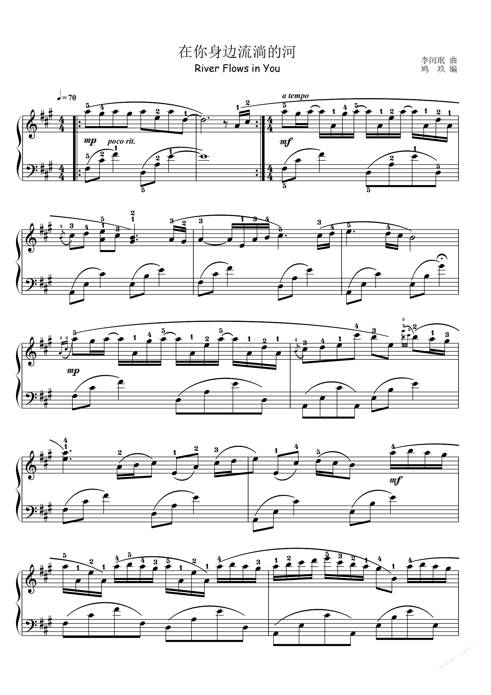 钢琴谱:River Flows In You (在你身边流淌的河)