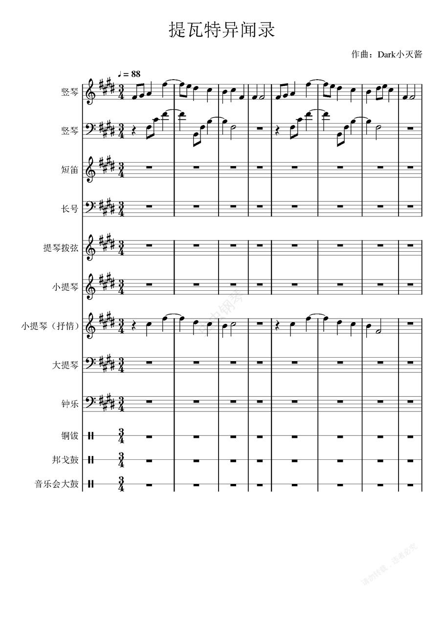钢琴谱:提瓦特异闻录