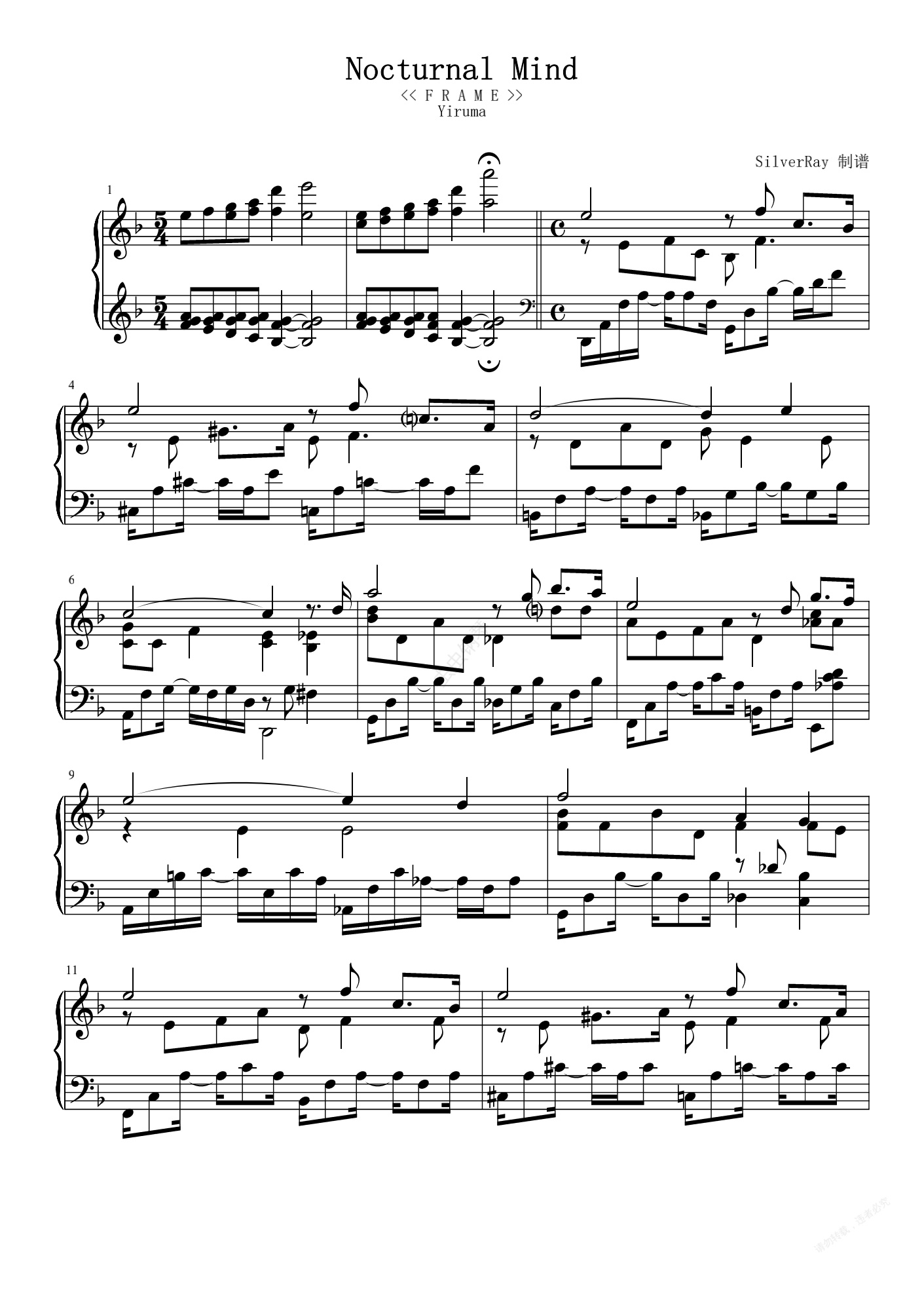 钢琴谱:Yiruma - Nocturnal Mind (SilverRay 制谱)