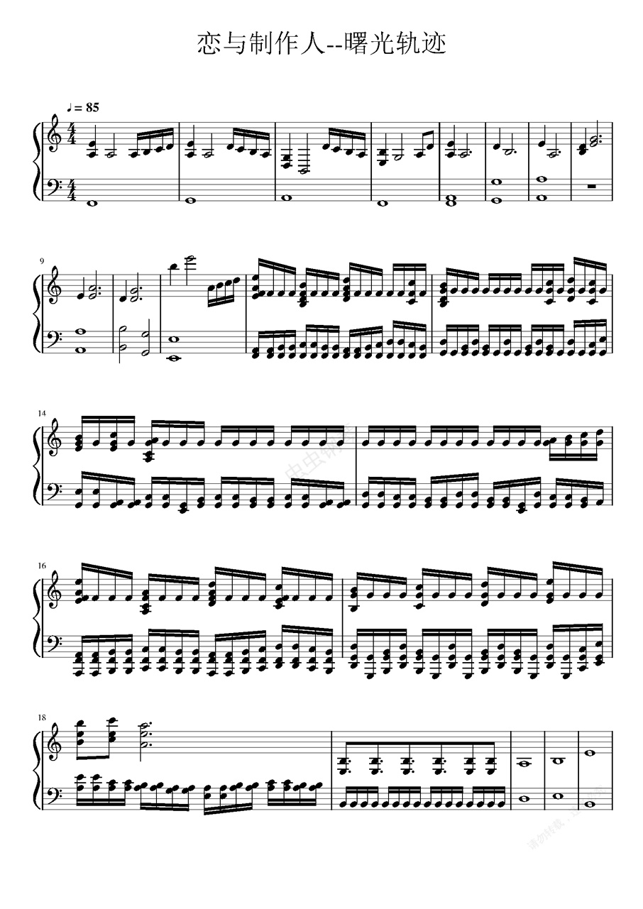 钢琴谱:恋与制作人——曙光轨迹(星级光圈版)