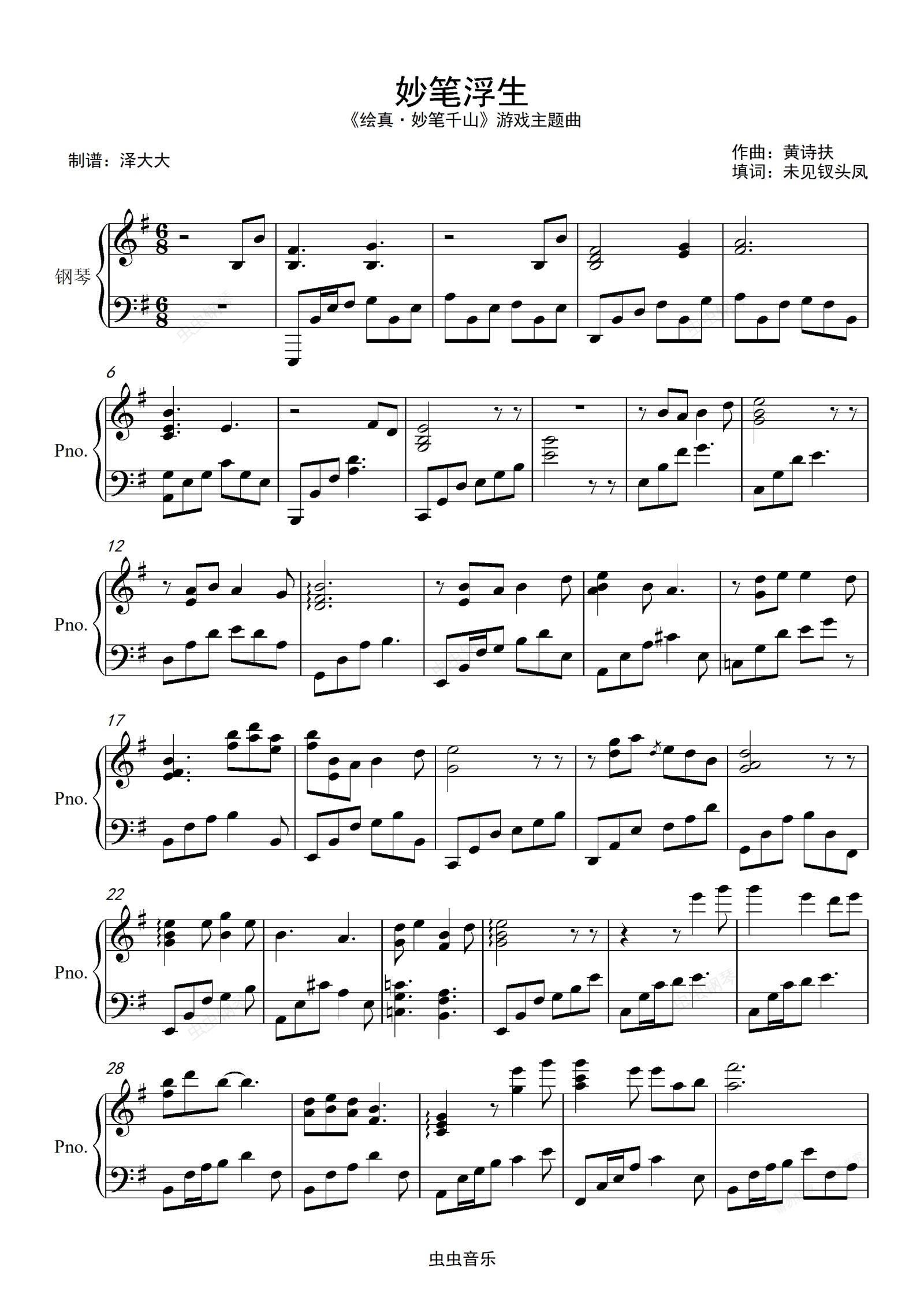 钢琴谱:妙笔浮生--银临(钢琴独奏版)