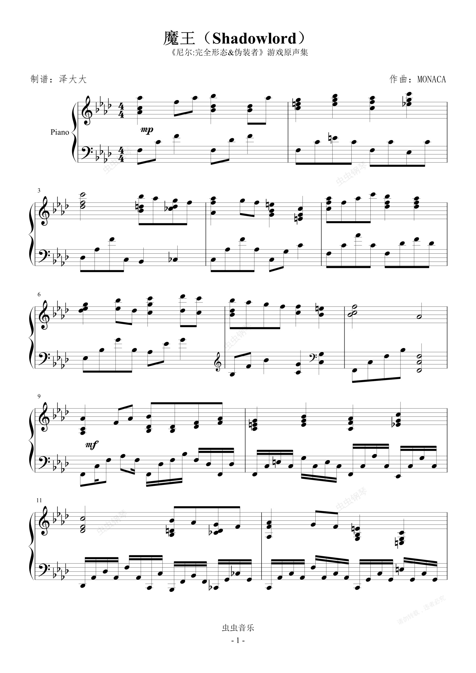 钢琴谱:魔王(Shadowlord《尼尔:完全形态&伪装者》原声集)