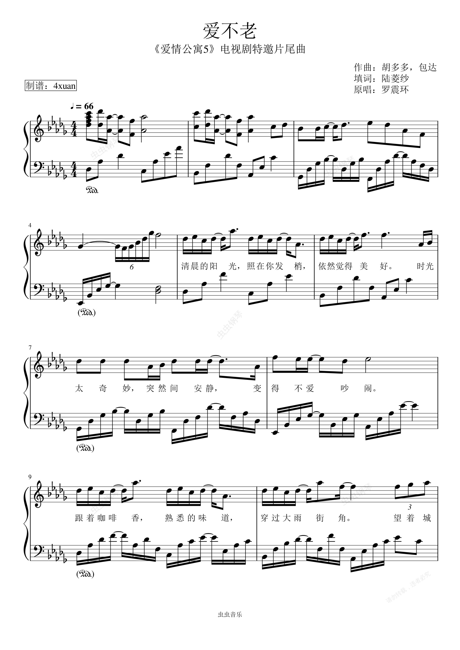 钢琴谱:爱不老--电视剧《爱情公寓5》特邀片尾曲