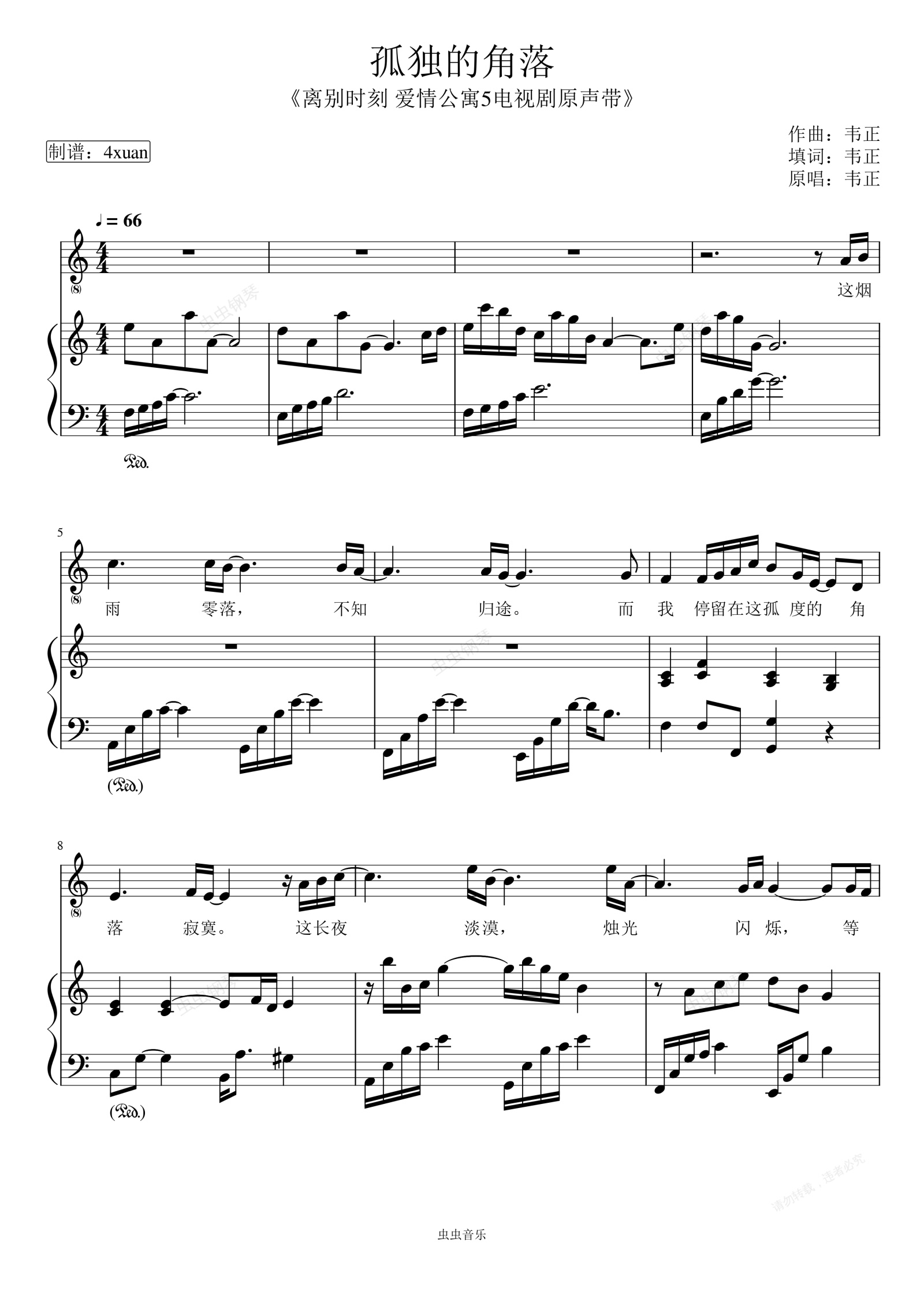 钢琴谱:孤独的角落 《离别时刻 爱情公寓5电视剧原声带》