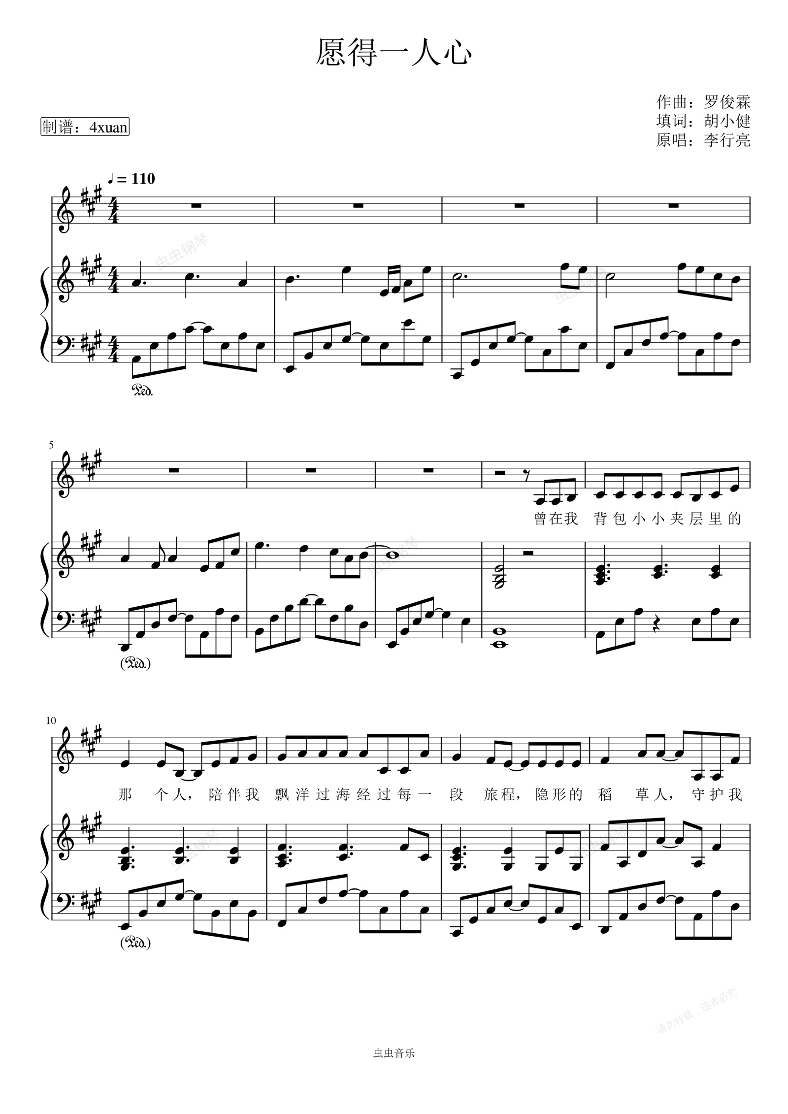 钢琴谱:愿得一人心 《最美的时光》主题曲
