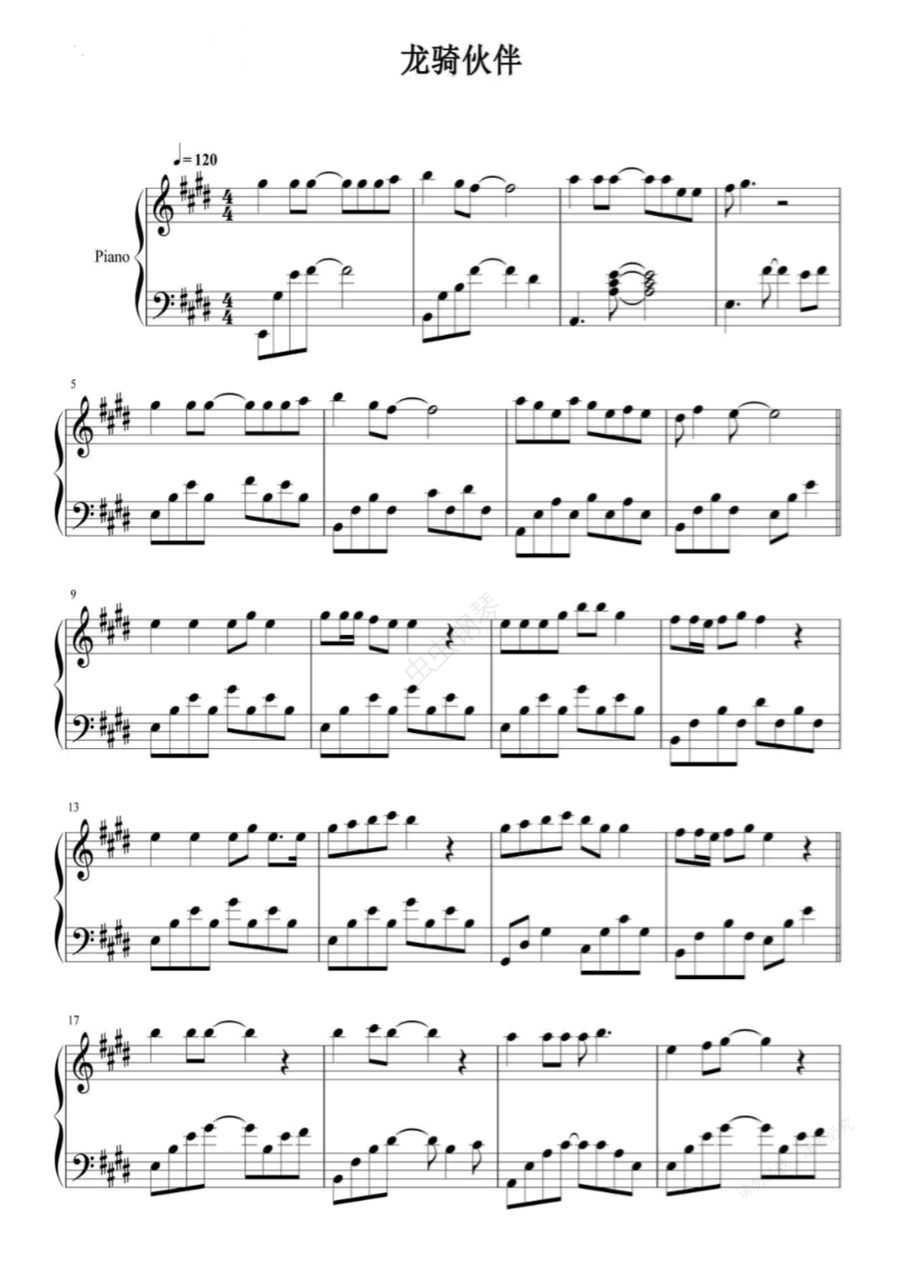 钢琴谱:龙骑伙伴(蓝猫龙骑团)