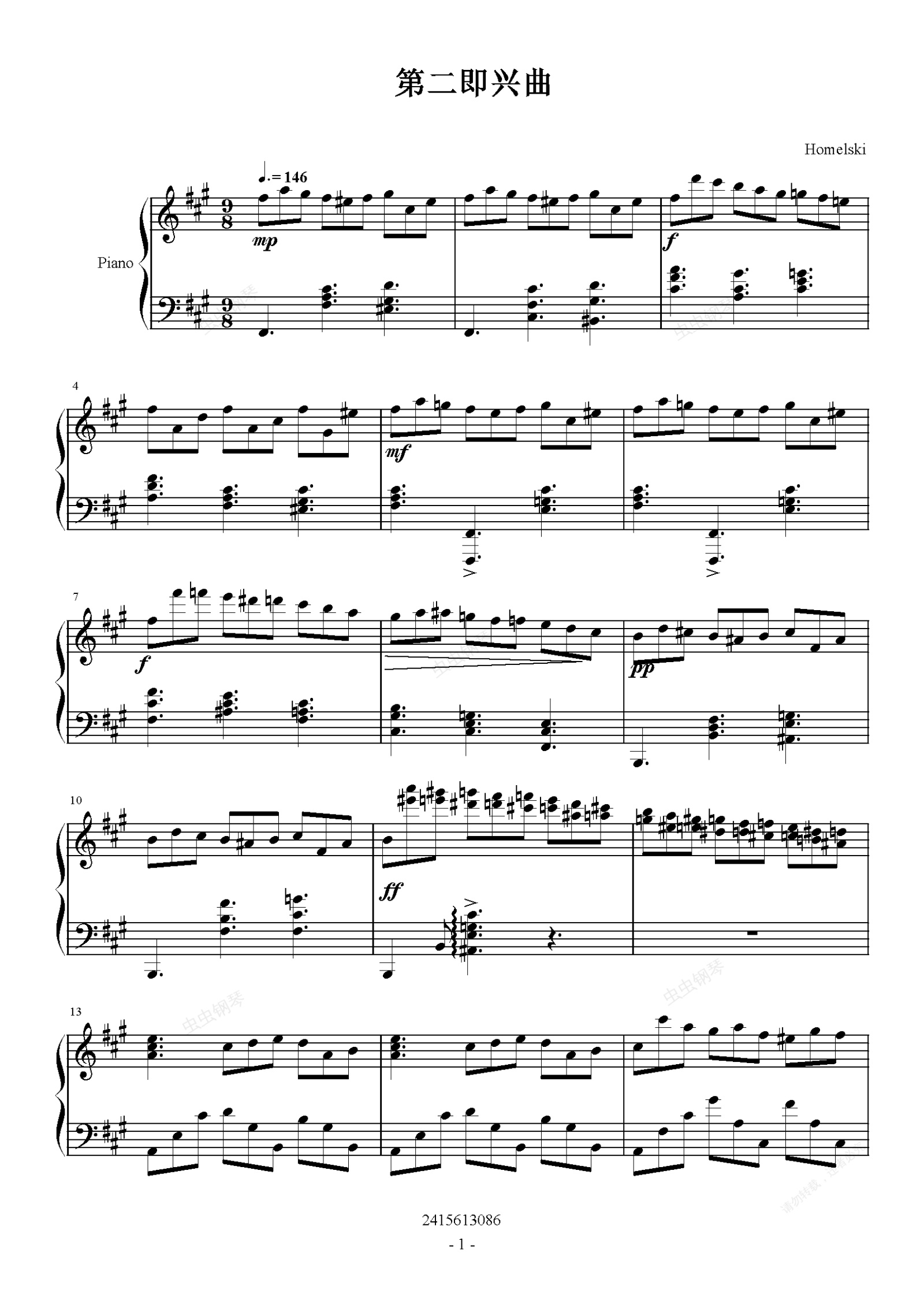 钢琴谱:Impromptus No.1/第一即兴曲-Homelnz W.