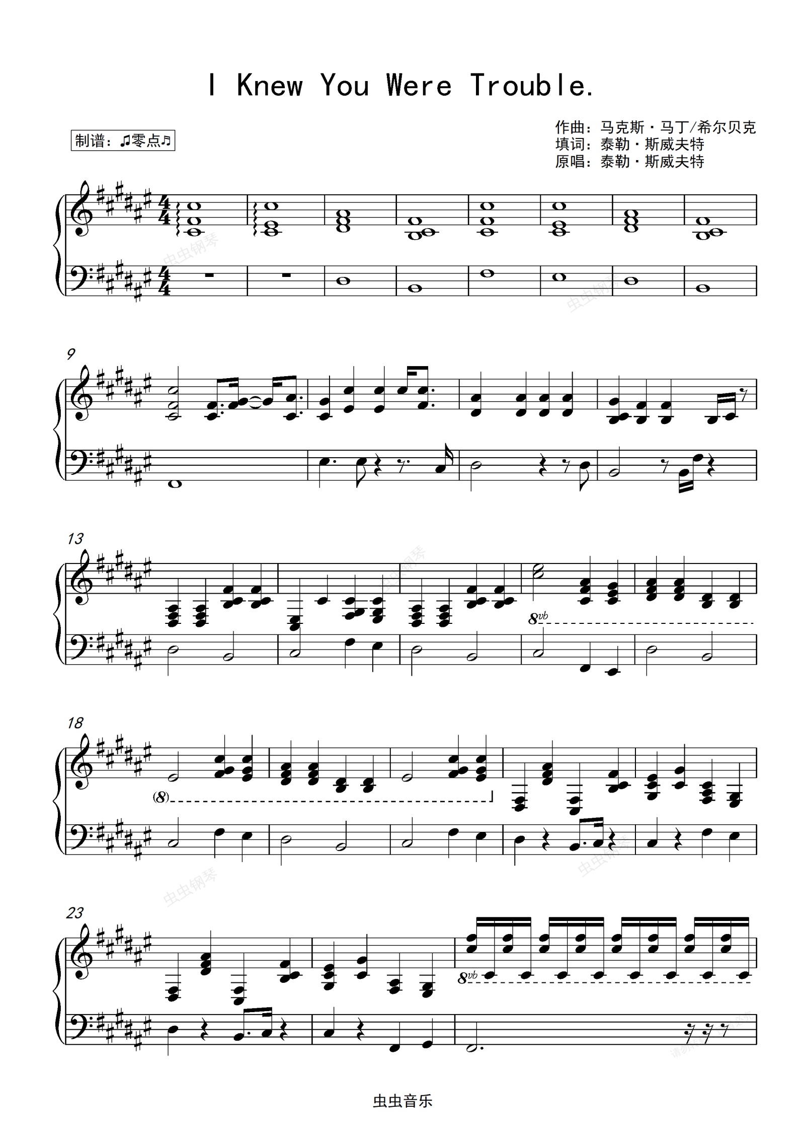 钢琴谱:I Knew You Were Trouble(我知道你是大麻烦)