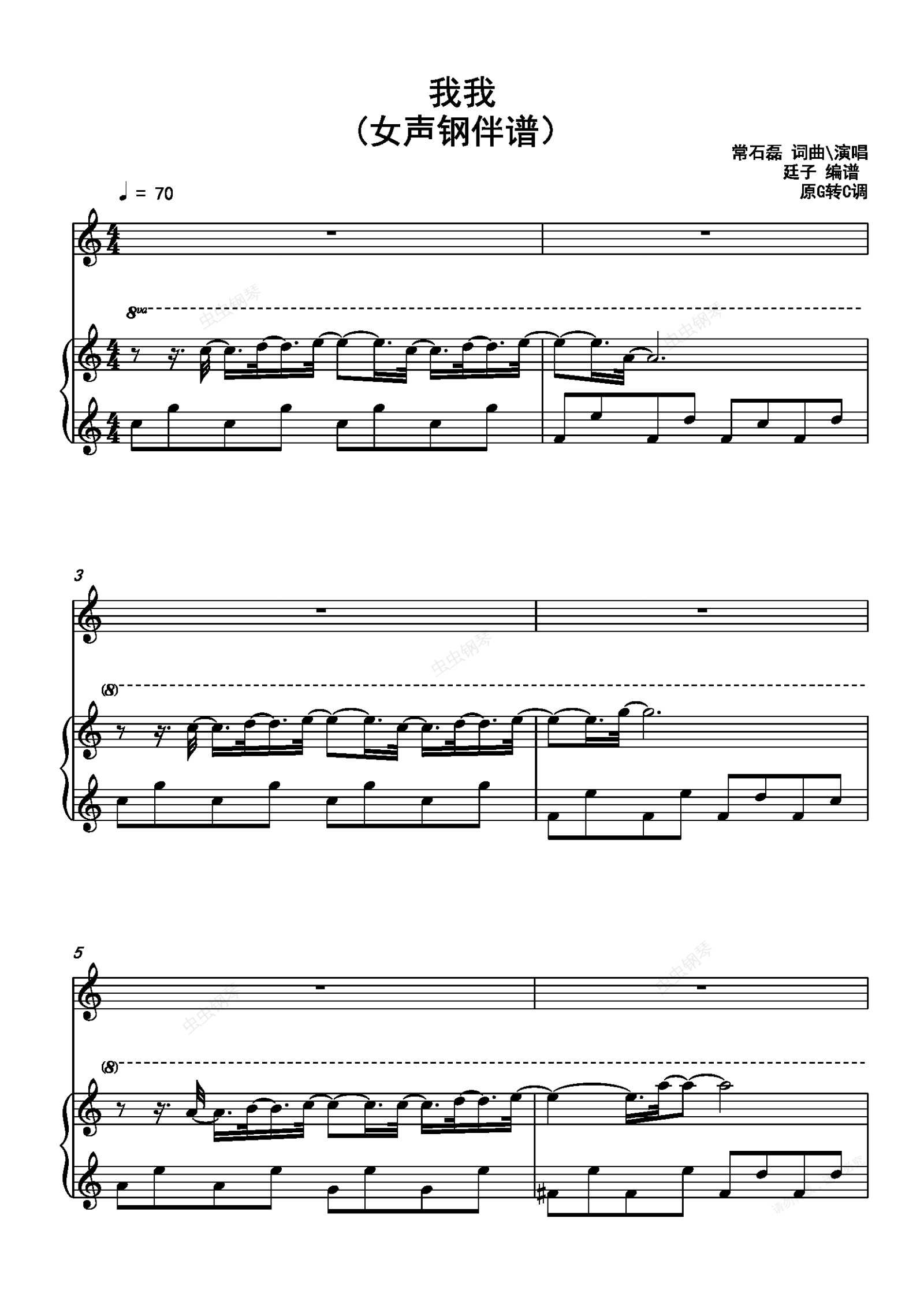 钢琴谱:我我—常石磊 女声C调钢琴伴奏谱