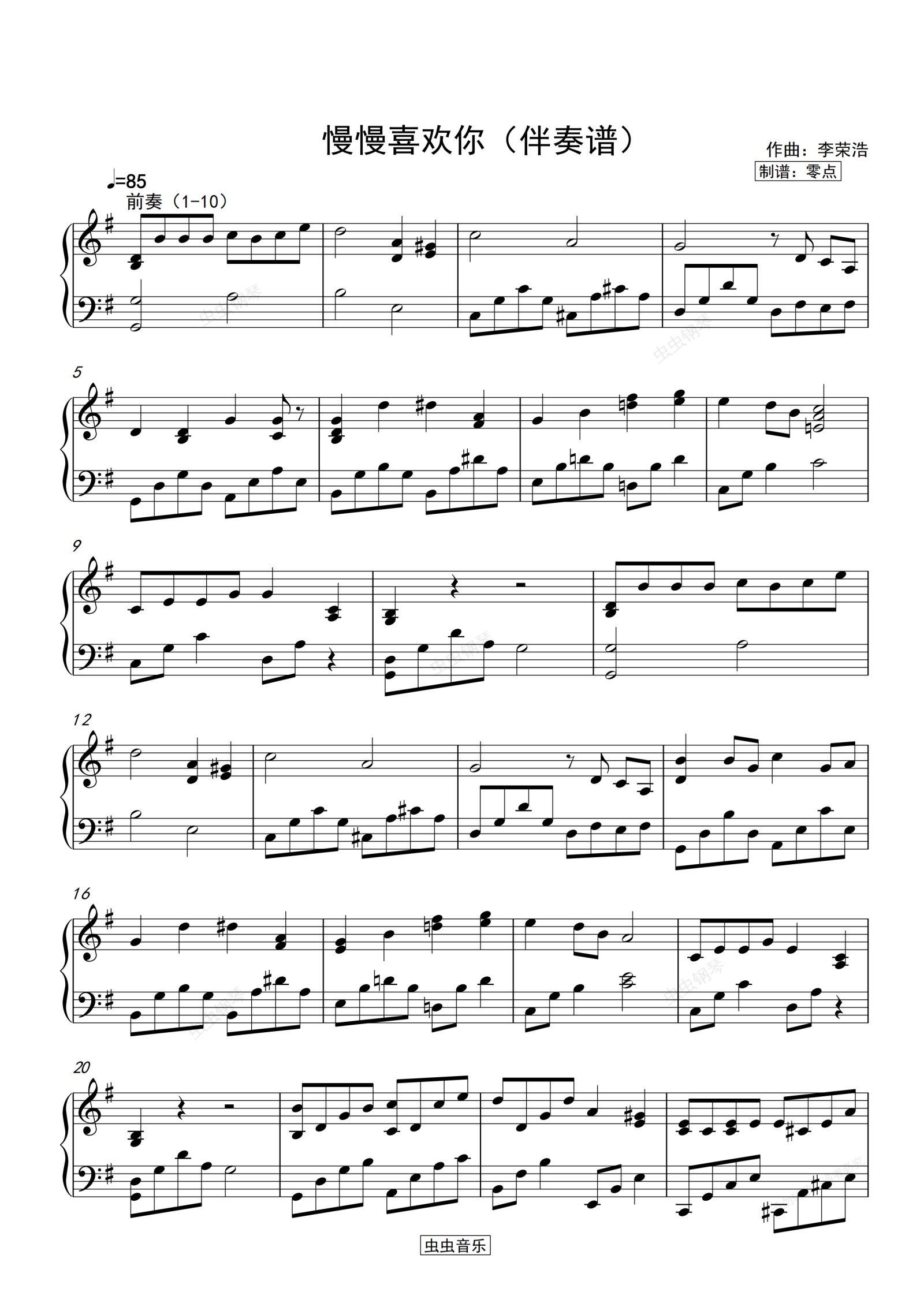 钢琴谱:慢慢喜欢你钢琴伴奏
