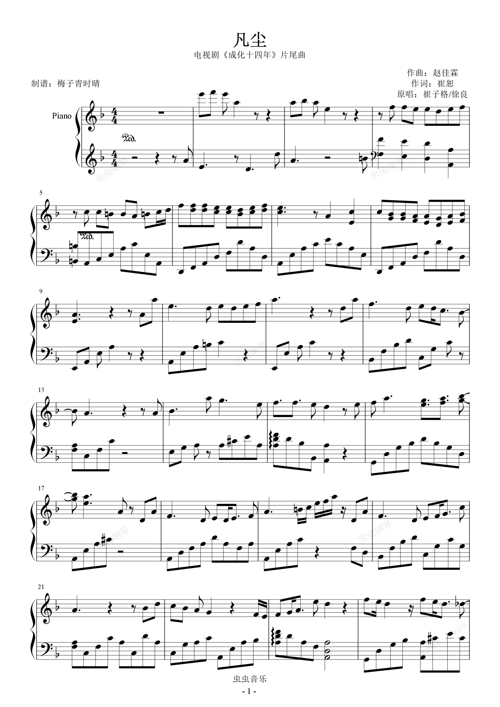 钢琴谱:凡尘《成化十四年》片尾曲