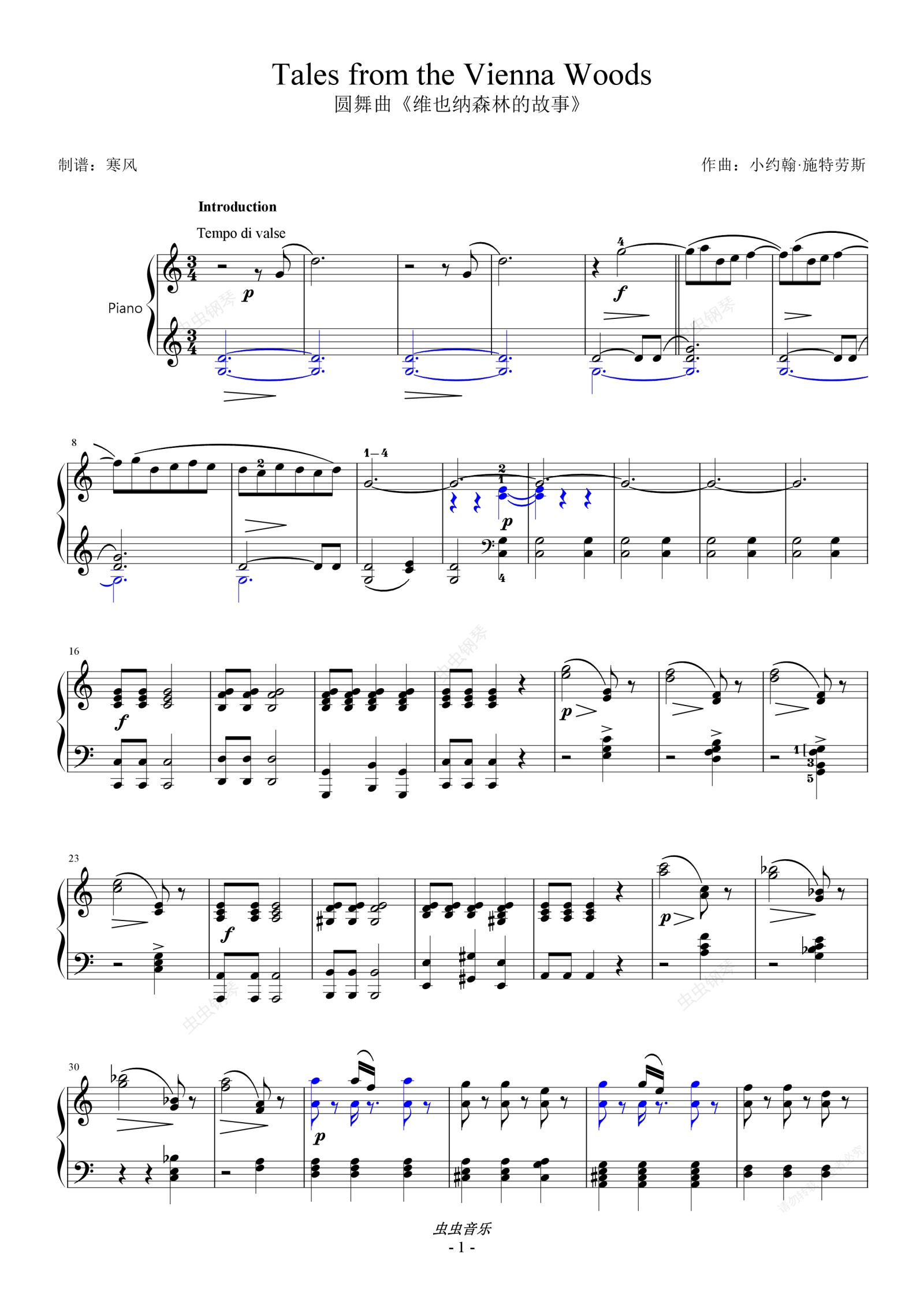 钢琴谱:小约翰·施特劳斯-维也纳森林的故事
