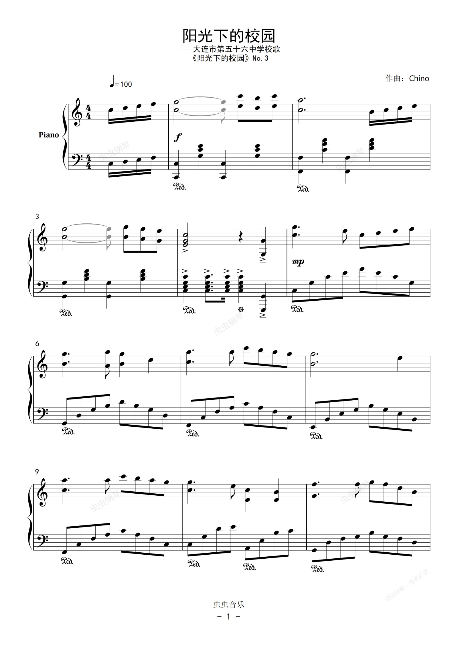 钢琴谱:阳光下的校园(原创)