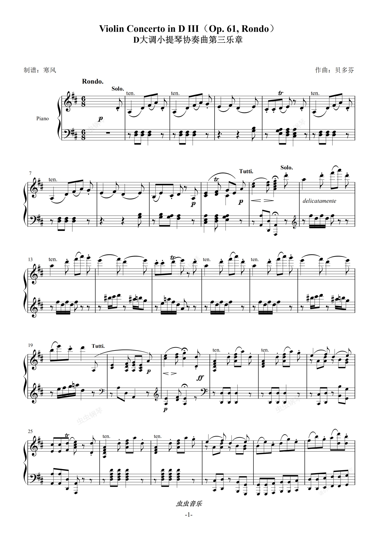 钢琴谱:贝多芬-D大调小提琴协奏曲第三乐章(钢琴独奏)