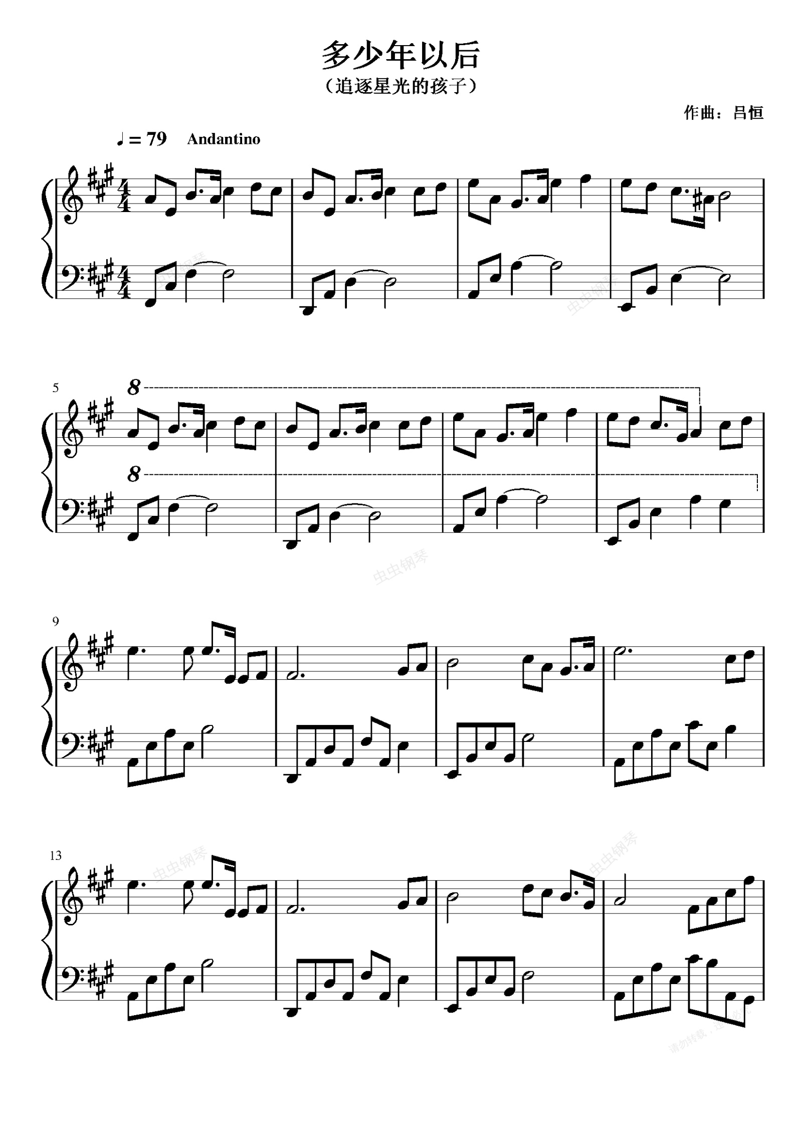 钢琴谱:多少年以后